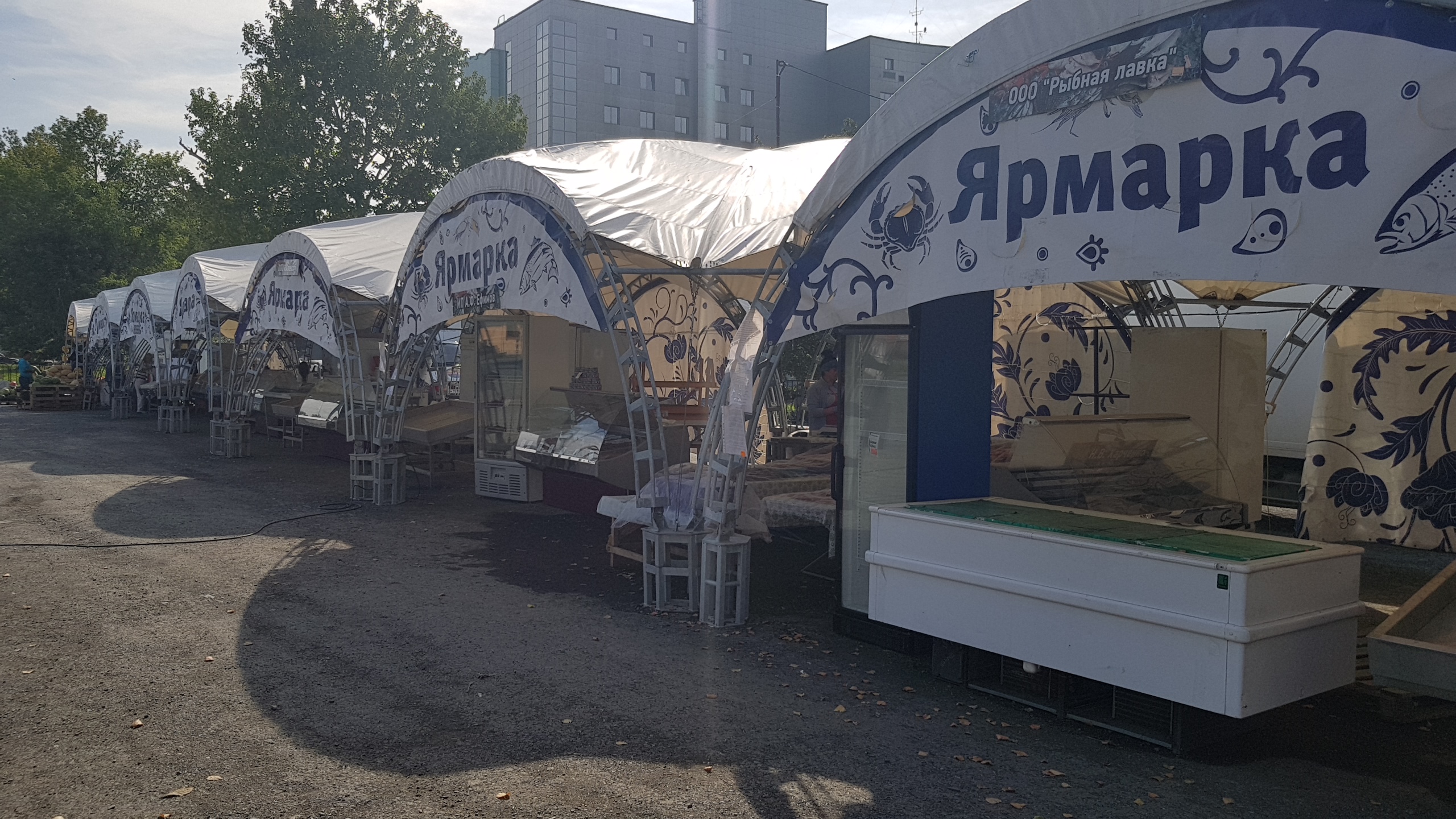 Здесь “рыбный четверг” совсем не задался. Уличные прилавки, где обычно продавалась рыба, сегодня заняты под торговлю рассадой цветов. В крытом павильоне буквально 3-4 прилавка имеют в своем ассортименте охлажденный лосось.