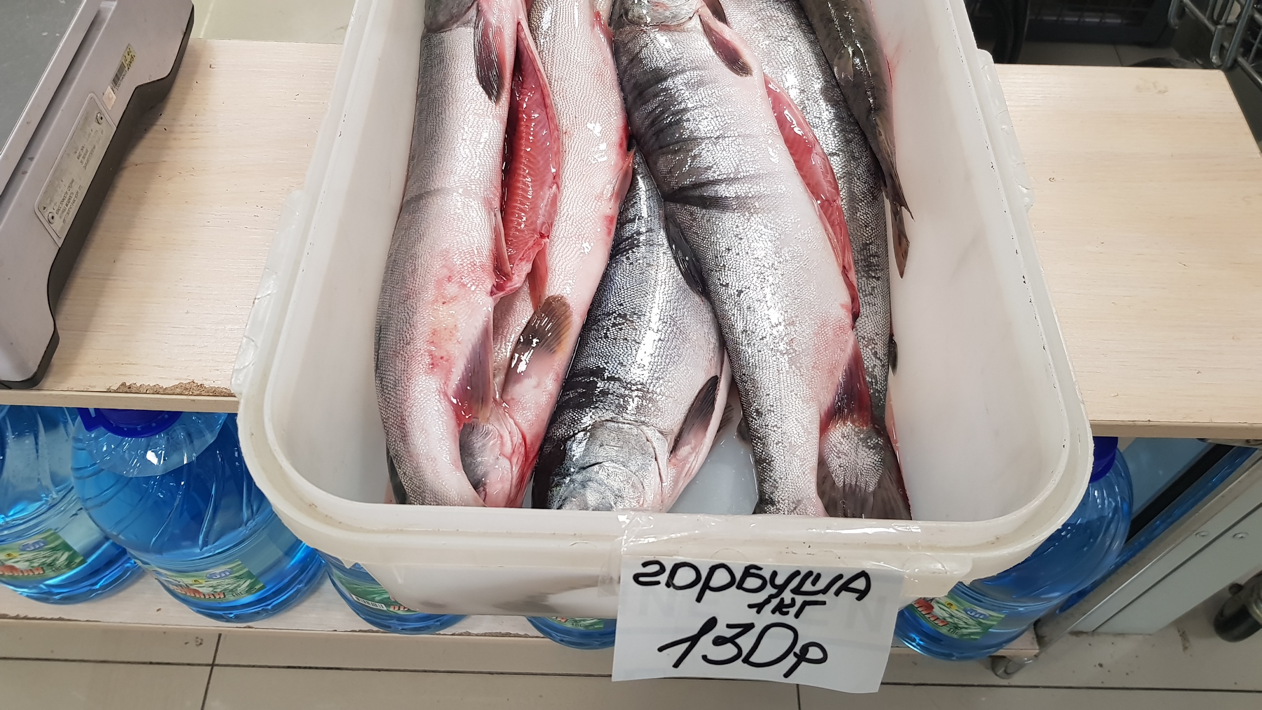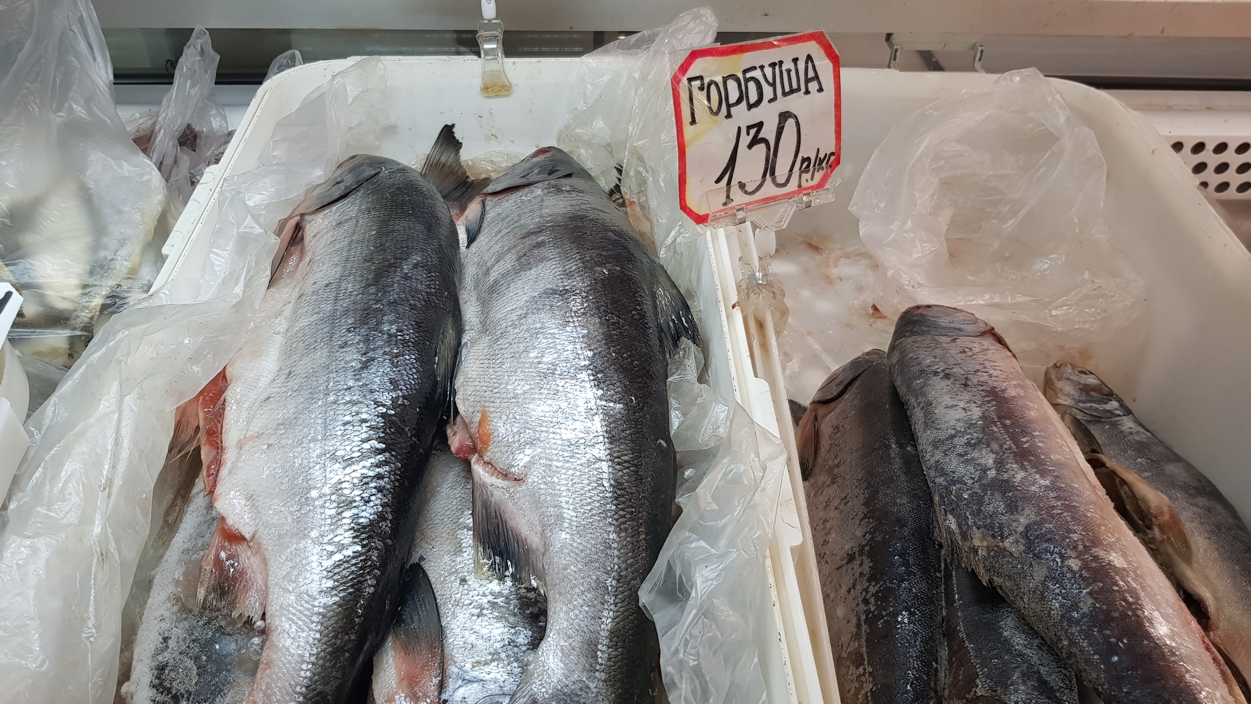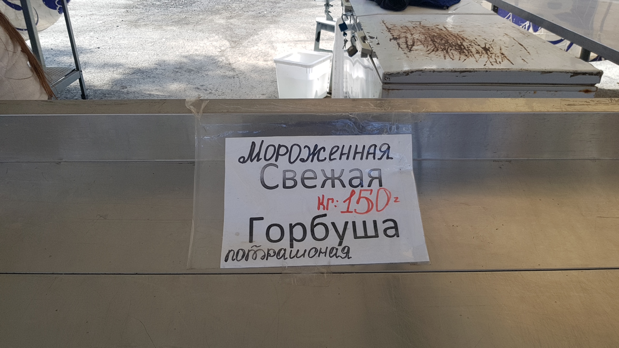 Горбушу здесь продают от 130 до 150 рублей за килограмм. “Социальная” рыба не приплыла.