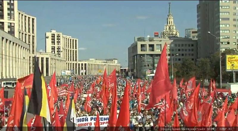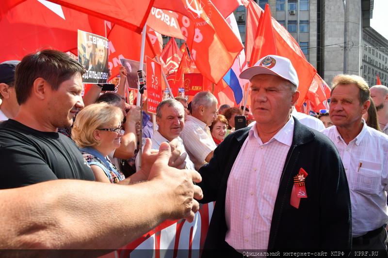 2 сентября в Москве состоялась массовая акция протеста против антинародной пенсионной «реформы». По оценкам организаторов, в шествии и митинге приняло участие значительно большее число граждан, чем во время предыдущего протестного мероприятия, состоявшегося 28 июля. Так, заместитель Председателя ЦК КПРФ В.И. Кашин и кандидат в мэры Москвы от КПРФ В.В. Кумин оценили количество участников митинга – около 100 тысяч человек. Перед участниками акции выступил лидер КПРФ и Народно-патриотических сил России Г.А. Зюганов. Вел митинг секретарь Московского ГК КПРФ В.Р. Родин.