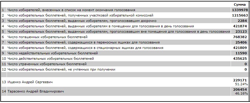 | Ищенко Андрей Сергеевич | 229171 51.24% |