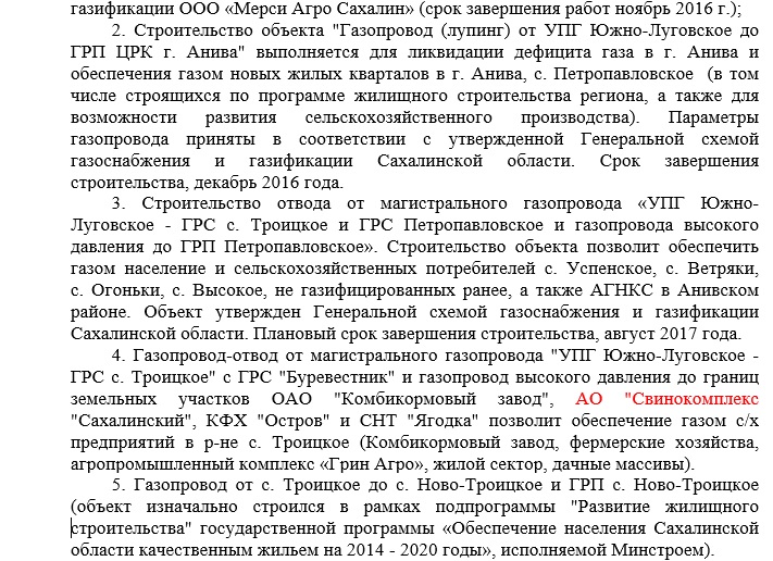 Основной вид деятельности АО «Свинокомплекс «Сахалинский» – разведение свиней, точно такой же как у АО «Мерси Агро Сахалин». АО «Свинокомплекс «Сахалинский» не упоминается в публикациях СМИ, оттуда не поступают бравурные отчеты об опережающем развитии АПК Сахалина, обеспечении «доступным мясом» жителей региона и прочих успехах. Завидная скромность. Один раз мы обнаружили в документах упоминание об этом юридическом лице в связи с проведением работ по газификации Анивского района, где «Свинокомплекс Сахалинский» фигурирует среди потребителей газа. Для каких целей было создано предприятие, имеется ли у него собственное стадо свиней, взаимодействует ли комплекс с АО «Мерси Агро Сахалин» и на каких условиях – информации нет.