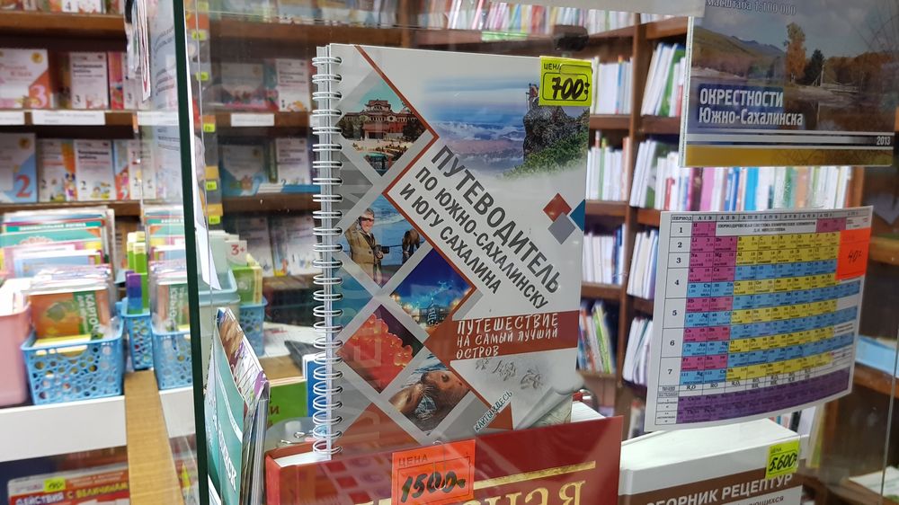 В чем причина отсутствия необходимого материала? Мы беседовали с продавцами. Как оказалось, местные типографии даже не связываются с изготовлением тех или иных карт, на которых будут указаны природные или исторические памятники наших островов. Эпизодически идут поставки с материка, чаще с Благовещенска. В любом случае, имеем то, что имеем.
