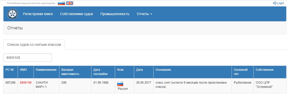 Сведений о продаже судна регистрации судна в иностранном морском регистре, капитан морского порта Невельск не имеет. Законных оснований на использование двух пакетов документов нет, так как судно может быть зарегистрировано только в реестре одного государства. И самое интересное, у 2-х судов, одновременно не может быть одинакового IMO – 8909109.