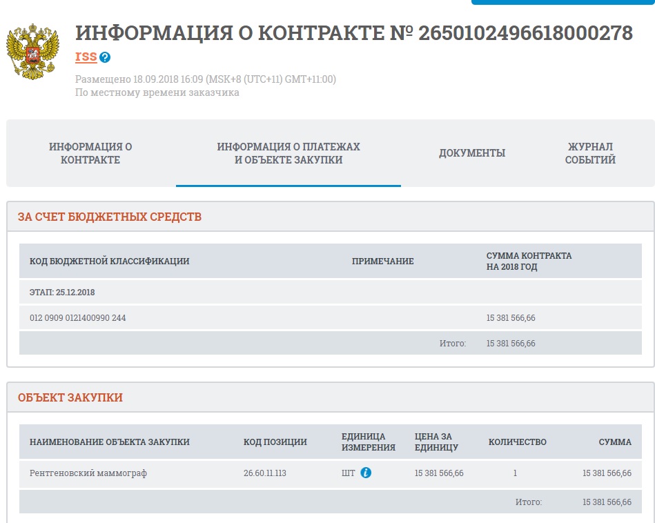 Прочие позиции деятельности этого предпринимателя мы даже не рассматривали. Пусть это сделают искушенные специалисты. Тем более что точные характеристики того самого маммографа в карточке контракта отсутствуют и сравнить эту закупку с имеющимися образцами на рынке не представляется возможным. Поможет это уточнить инвентаризация в стенах медучреждения, где работает приобретенный маммограф.