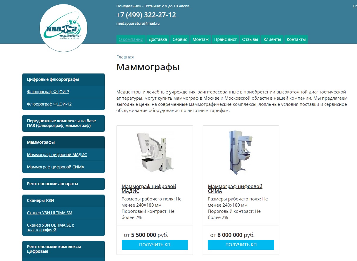 Мы можем лишь сравнивать цены от производственного объединения «Медаппаратура» (г. Москва). Там маммографы выставлены по ценам от 5,5 млн рублей до 8 млн рублей.