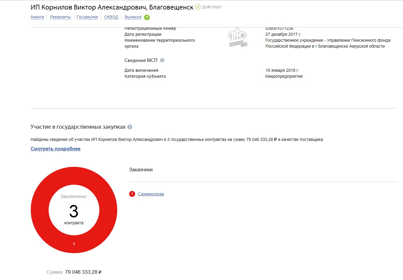 Директор Виктор Корнилов имеет ИП в Амурской области (поставщик в Сахминдздрав на сумму более 79 млн руб).