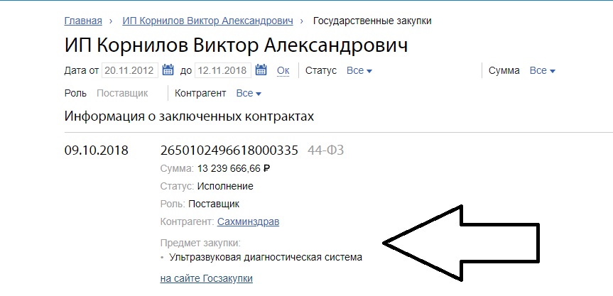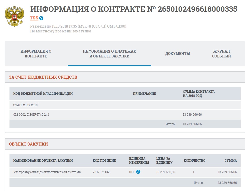 В конце 2018 года, на очередную закупку от сахалинского минздрава вновь никто не заявился (привычная для нас практика) и Дмитрию Васильченкову пришлось в октябре текущего года выступать в роли «единственного поставщика». Он был вынужден закупать для нас оборудование, которое в карточке контракта не имеет своих характеристик (производитель, расшифровка позиции). Цены приятные во всех отношениях.