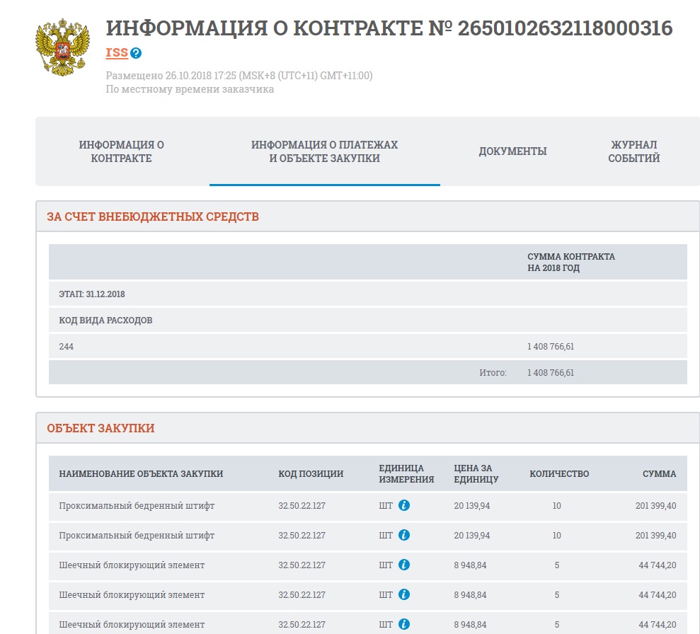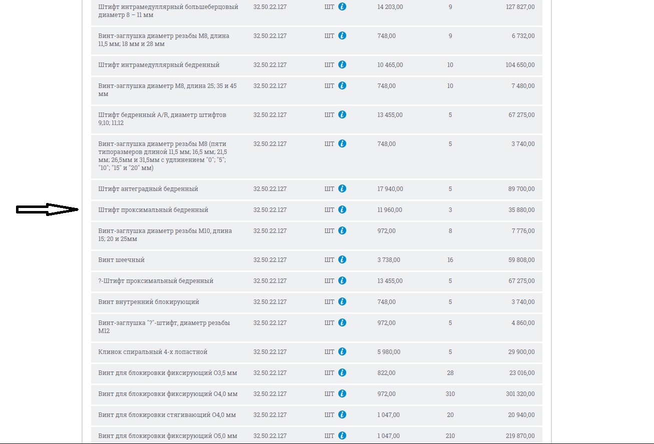 Проксимальный бедренный штифт (есть такое) обошелся бюджету более 20 тыс рублей за единицу товара.