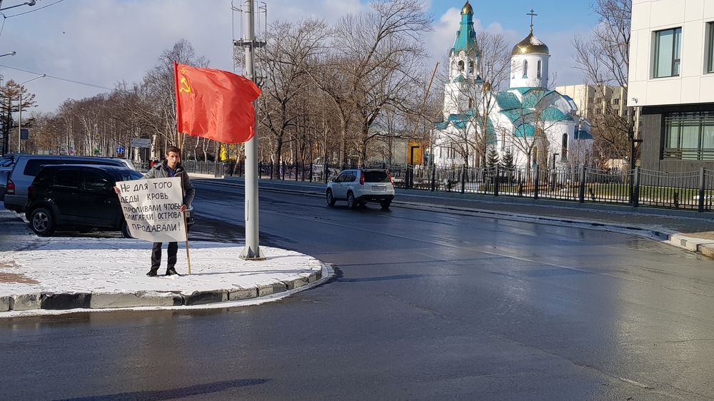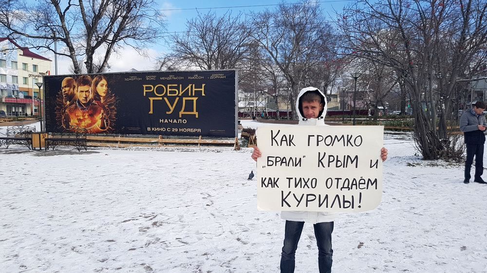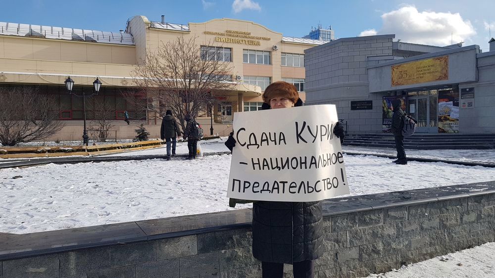 А в Южно-Сахалинске одиночные пикеты прошли у консульства Японии,