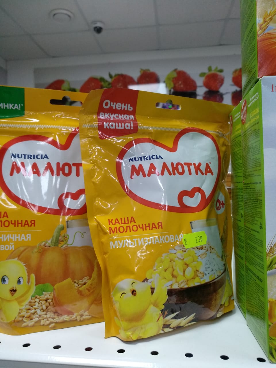 Скромный пакетик молочной каши для детей по 230 рублей,