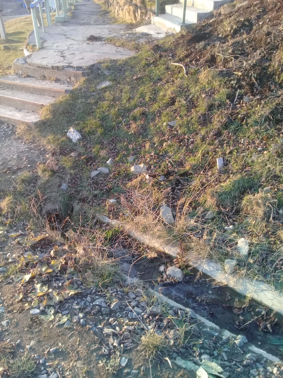 Канализация течет с нового построенного сада и стекает по желобку вдоль школьной лестницы, очистные сооружения, построенные по “курильской программе”, ждут своего часа. Да и вообще весь населенный пункт, куда ни сунься, открытая канализация. Во всяком случае, эти “священные воды” благополучно стекают практически в центре села, мимо продуктовых магазинов и кафе. Рыли, рыли все дороги несколько лет назад, трубы закапывали, в итоге потом сказали, что муниципалитет должен подключать очистные и на этом все.