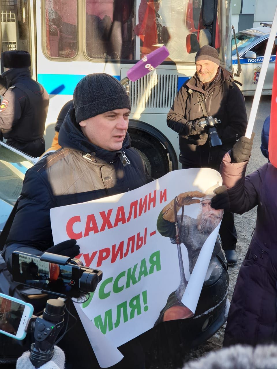 «Когда встреча только начиналась, у посольства уже стоял кортеж из пяти машин с мигалками, а среди участников был замечен высокий японец, поведением очень похожий на японского секьюрити. Видимо, готовился отъезд Абэ на встречу с Путиным. Затем силовики подогнали к участникам встречи три полицейских автобуса, отгородив нас от здания посольства, и начали по-быстрому «паковать» в них людей. Взяли и депутата Корниенко» – рассказал Денис Парфенов.