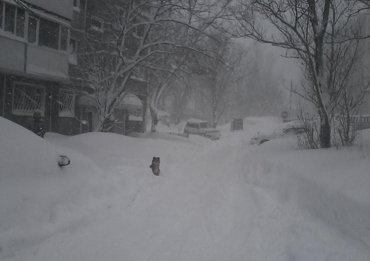 Метель, сильный ветер. За окном ничего не видно. Говорят, метели здесь как по расписанию и накануне женского праздника обязательно приходит одна из них. Горнолыжный комплекс закрыт, сидим в номере, читаем завистливые сообщения родственников-москвичей и активно питаемся (3000 рублей).