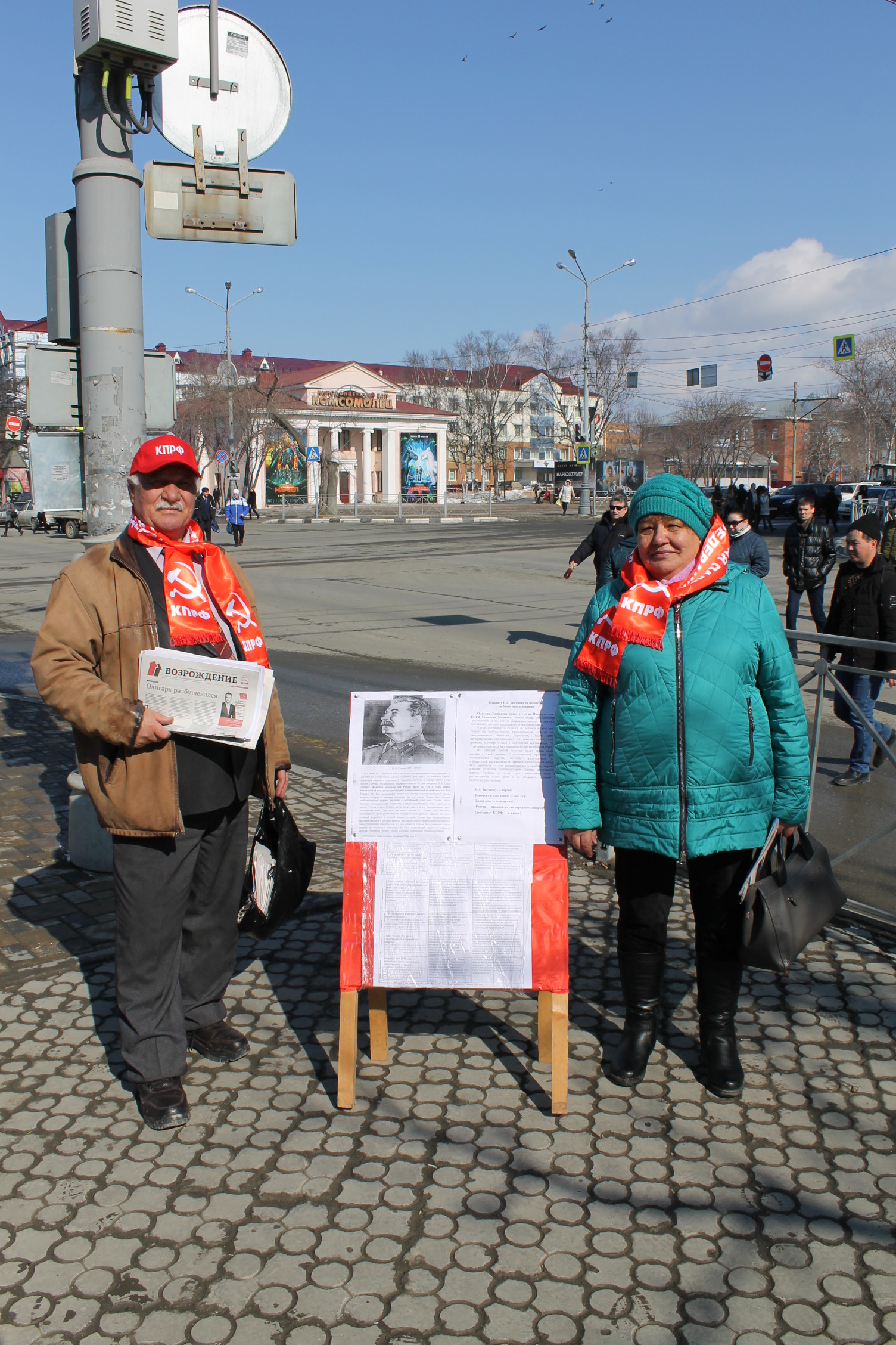 В Южно- Сахалинске, 5 марта 2019 года, членами КПРФ и их сторонниками, проведено два пикета по вопросам: «привлечение внимания к информации о роли И.В. Сталина в организации успехов строительства социализма в СССР и Победы в Великой Отечественной войне в день 66-ти летия его памяти, к тупиковой социально-экономической политики Правительства в условиях переживаемого экономического кризиса и в защиту населения России, в защиту Г.А. Зюганова от попыток судебного преследования».