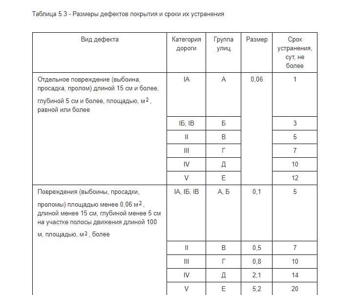 Итак, первым, принципиальным моментом в устранении всяких несуразиц на дороге, который должен остудить горячие головы – это пункт пункт 3.5 нового ГОСТа, в котором говорится, что срок устранения дефекта дороги начинает свой отсчет с момента его обнаружения и до устранения. Для начала яму должен увидеть специальный человек из администрации или ГИБДД.