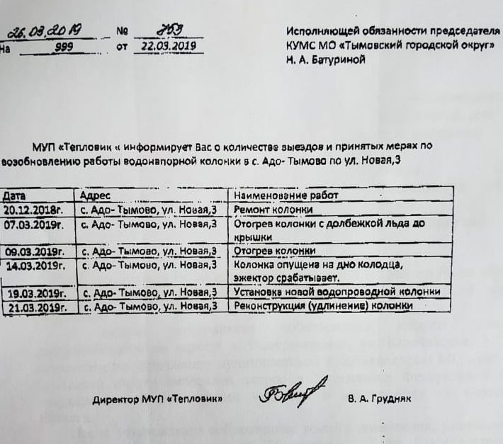 Специалистами района был разработан комплекс мероприятий, в результате которых источник был опущен, неоднократно отогрет.