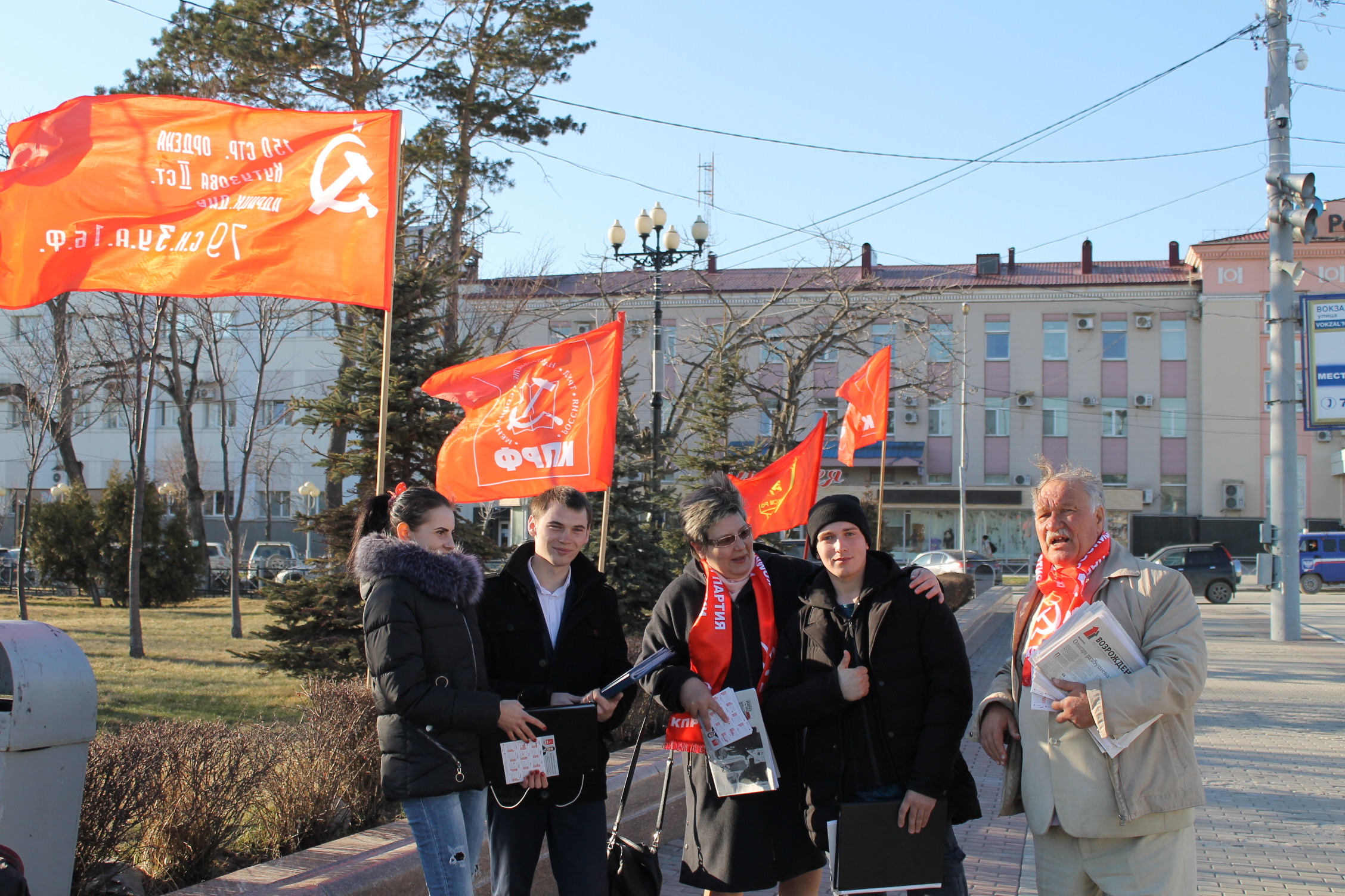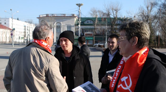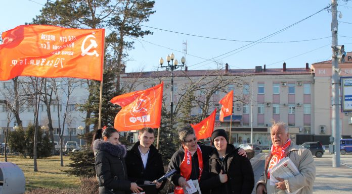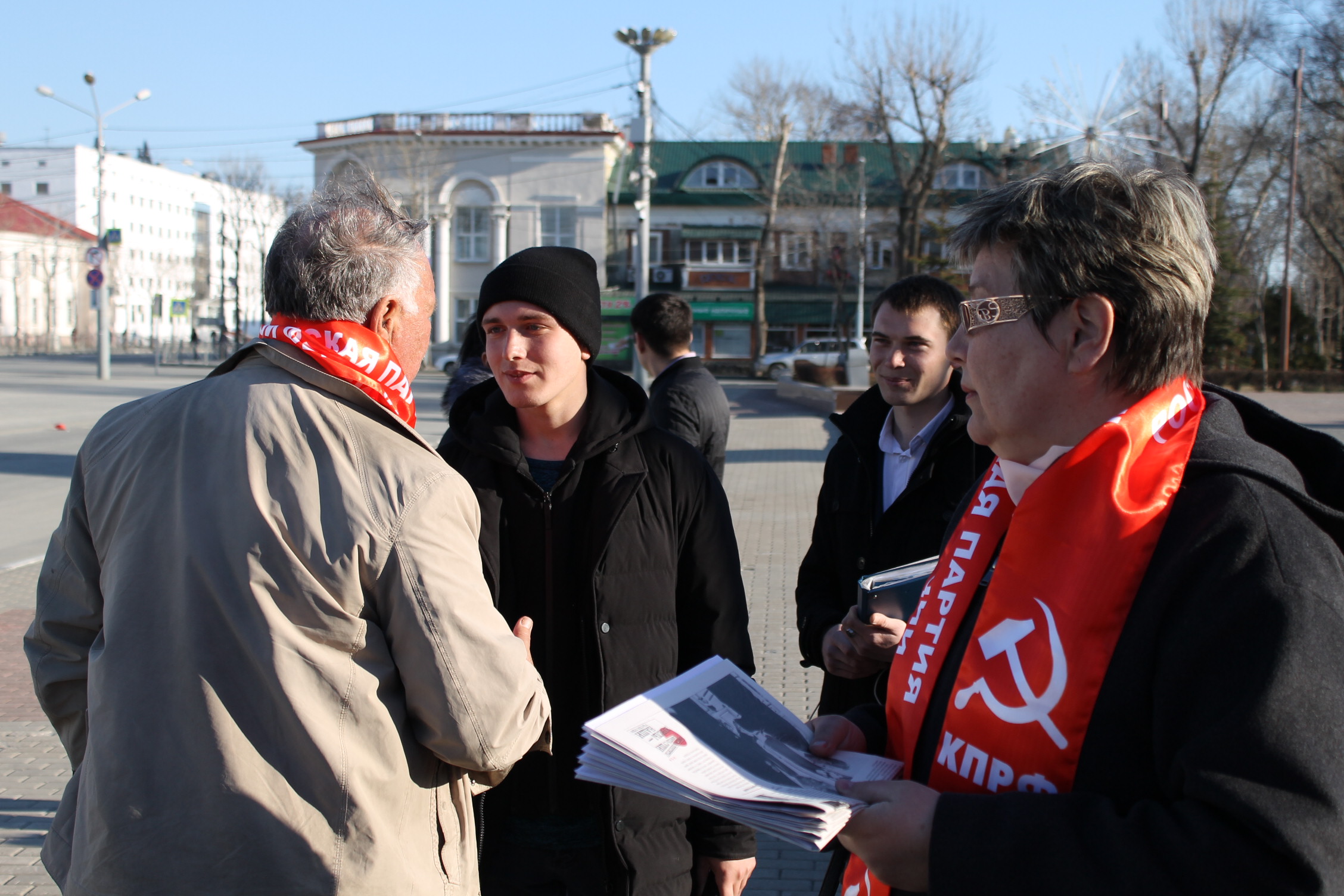 Южносахалинские коммунисты, члены местного отделения КПРФ провели на центральной площади областного центра пикет, в ходе которого активисты раздали жителям города экземпляры очередного номера газеты “Возрождение”.
