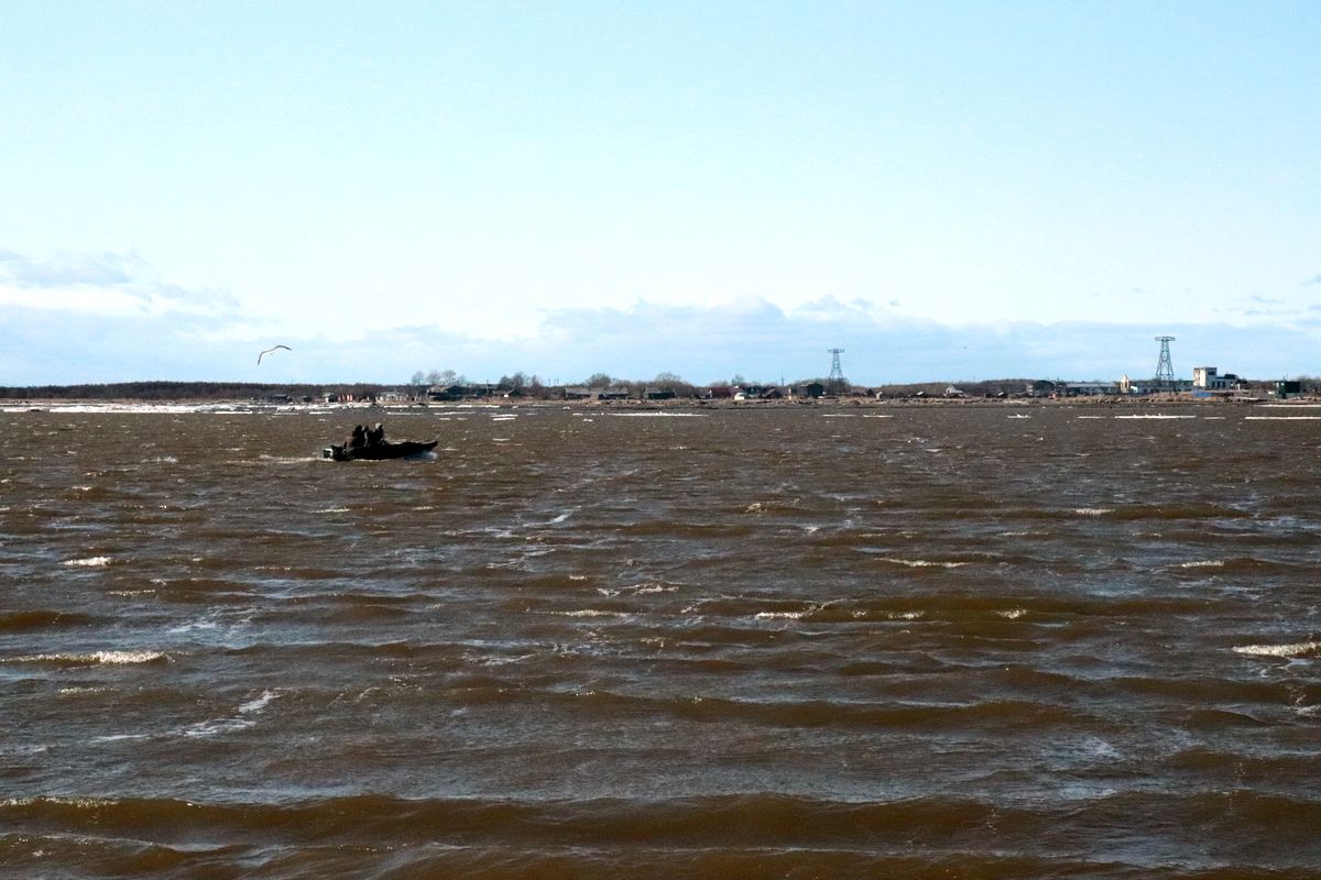 Набрав необходимое количество пассажиров, “пассажирская” моторка выдвигается на другой берег – к домам жителей острова Южный.