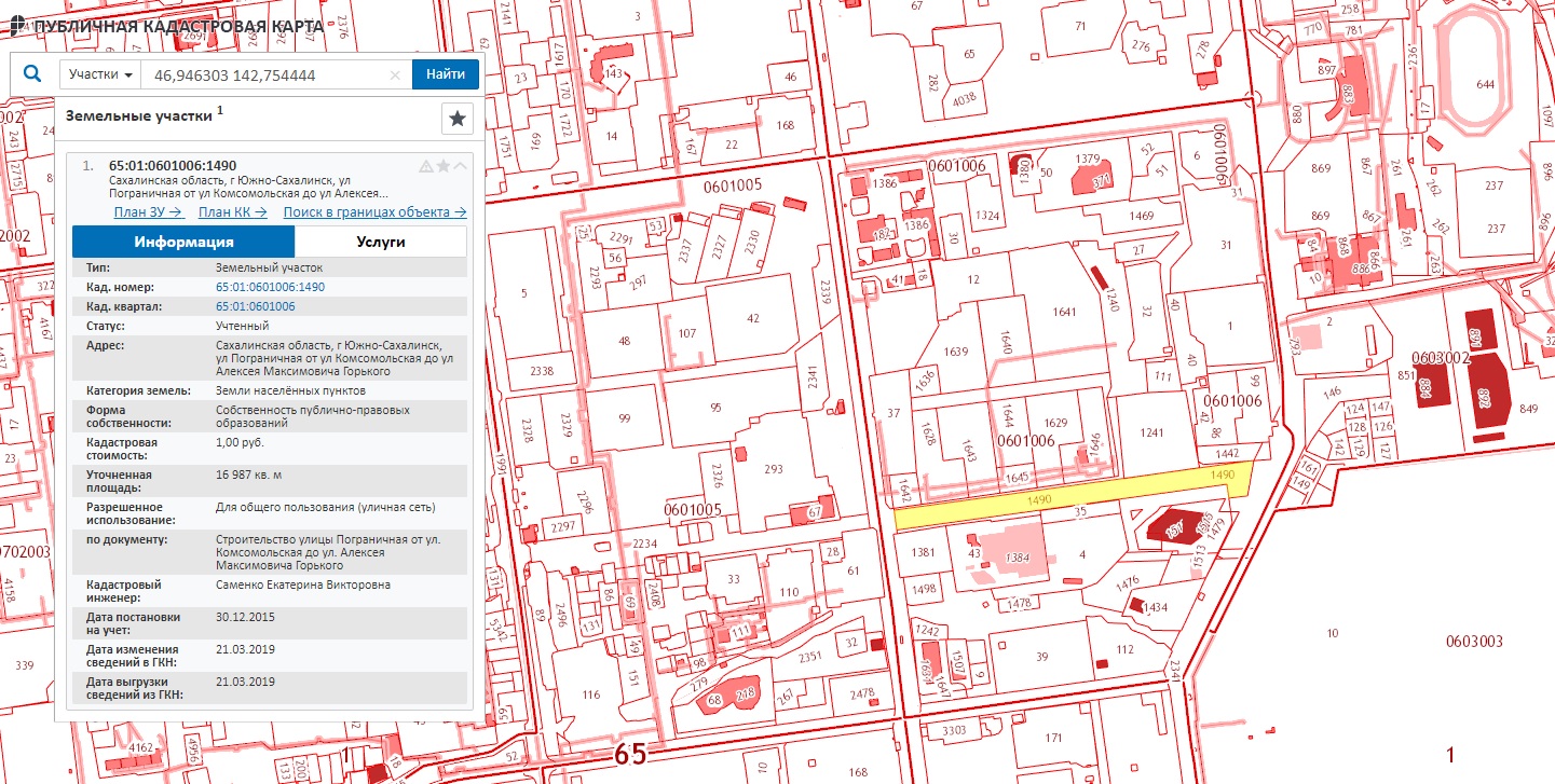 Действительно, та территория, которая простирается от ворот жилого комплекса “Ботанический сад” до перекрестка улиц Комсомольская и Пограничная имеет статус “уличная сеть”, а последние изменения в кадастровом учете произошли буквально накануне – в марте 2019 года.