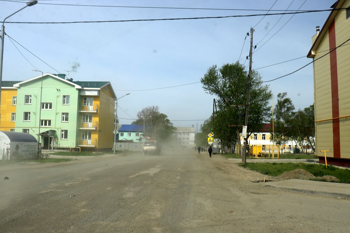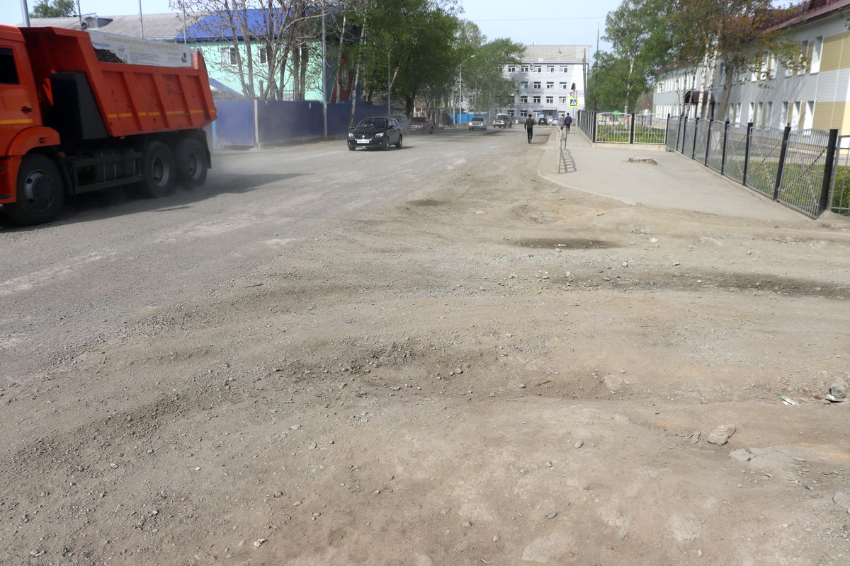 Прошло полтора года. Мы решили проверить, как там поживает “благоустройство”? Поездка и удалась и не удалась одновременно. На облагороженном участке этой автодороги виднеются следы тротуаров, отсутствуют признаки ливневой канализации, ямы заботливо прикрыты картонкой, а пыль стоит столбом, оседая в легких электората.