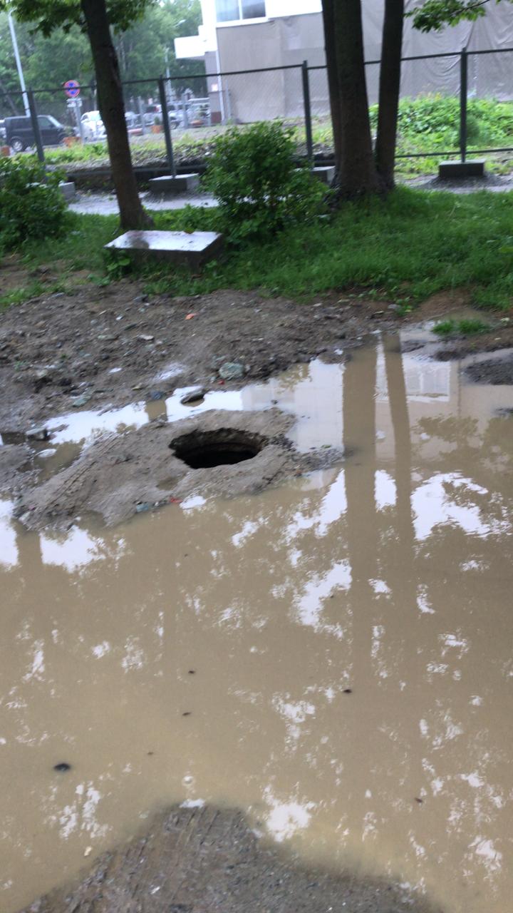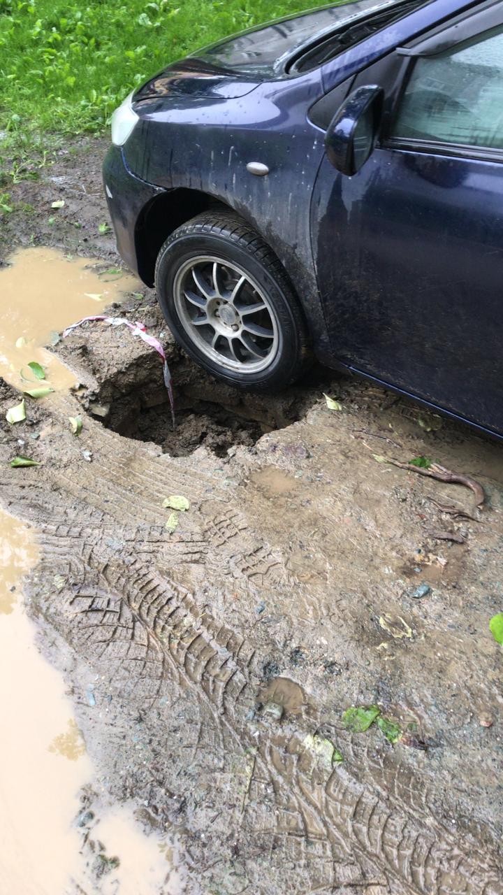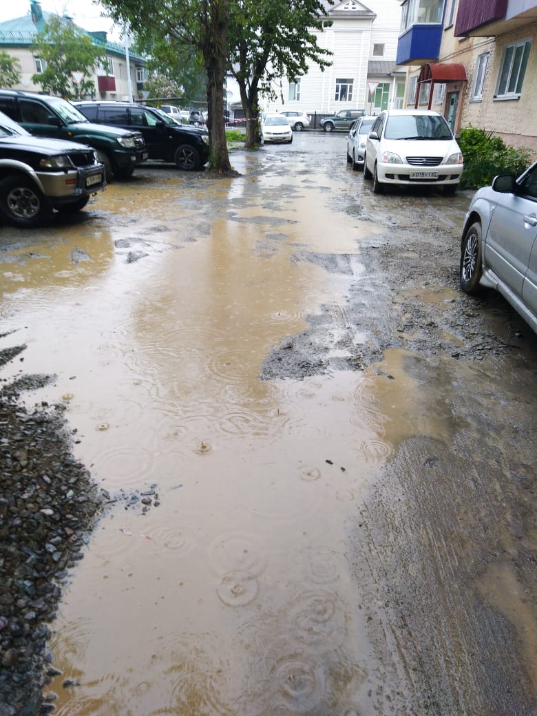 Наши читатели присылают в пресс-центр сахалинского отделения КПРФ снимки своего двора по улице Чехова, дом 3, который в эти часы начал проваливаться под землю и на его территории уже образовались ямы.