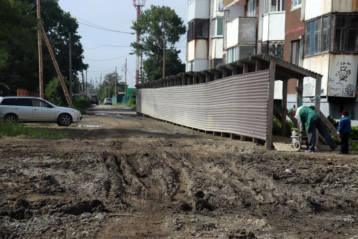 Строительные работы по возведению многоэтажных корпусов жилого дома в окрестностях Кадетской школы привели к тому, что пути к общеобразовательному учреждению превратились в подобие танкодрома. Школьники и их родители готовят к сентябрю высокопроходимую резиновую обувь, которая позволит преодолевать грязевой участок дороги на пути к светлым знаниям.