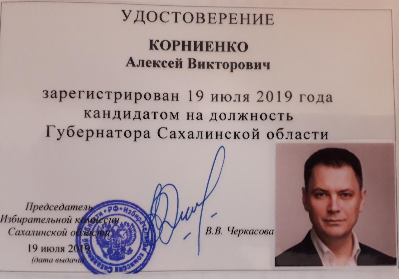 Избирательная Комиссия Сахалинской области завершила процедуру проверки представленных кандидатами документов, провела рабочее заседание, в ходе которого вынесено решение о регистрации Алексея Корниенко в качестве кандидата на должность губернатора Сахалинской области, выдвинутого политической партией “КПРФ”.