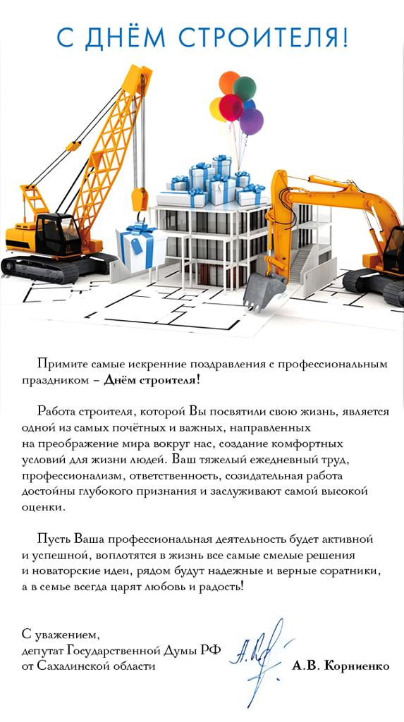 Кандидат в губернаторы Сахалинской области Алексей Корниенко поздравил всех работников строительной отрасли Сахалина и Курильских островов с их профессиональным праздником – Днем строителя.