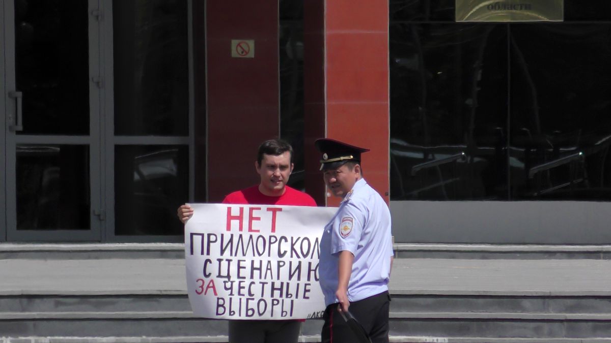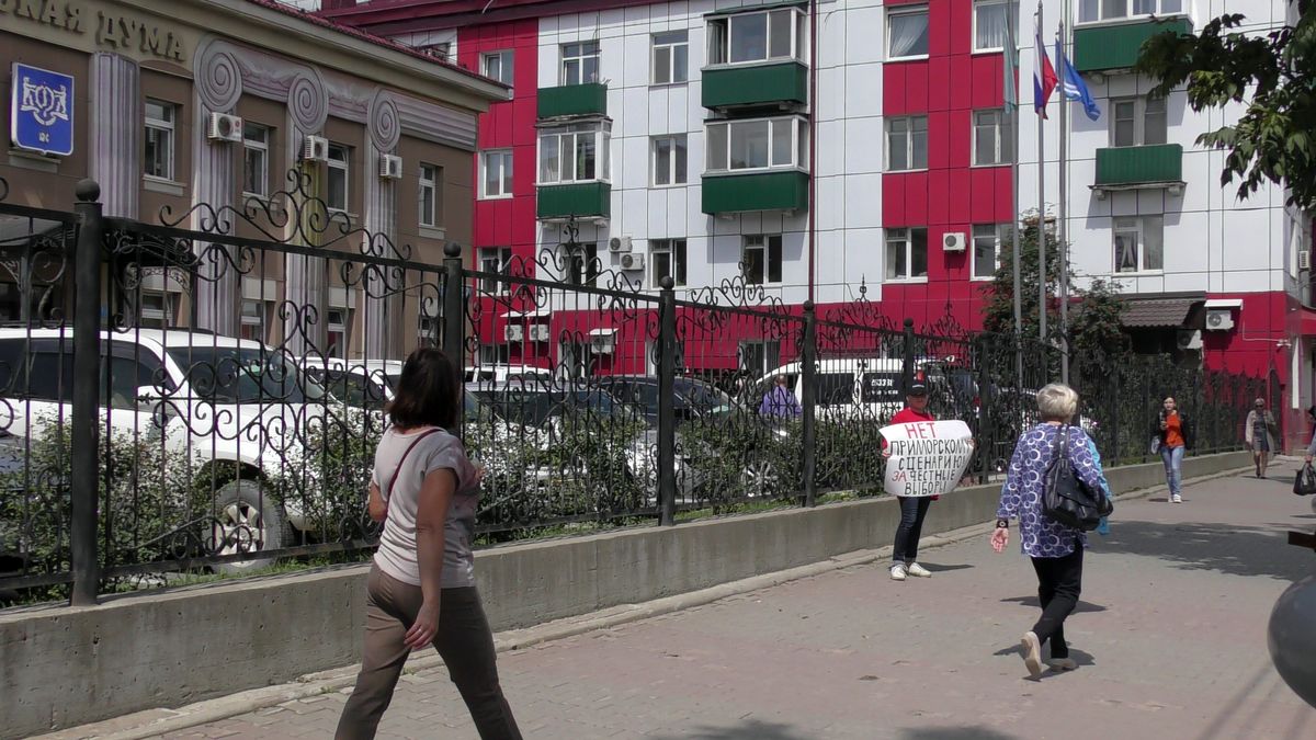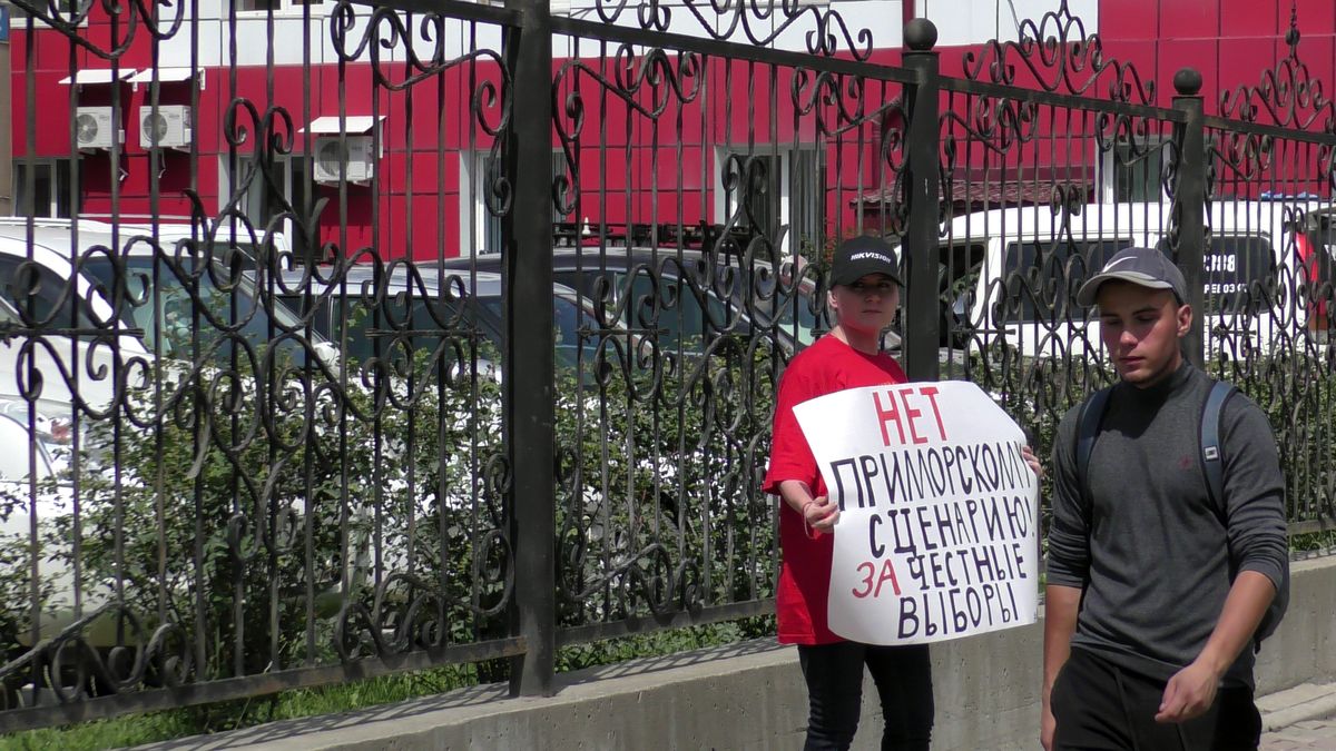 В Южно-Сахалинске прошли одиночные пикеты, участники которых потребовали от членов Избирательной Комиссии Сахалинской области и Территориальной Избирательной комиссии города Южно-Сахалинска обеспечить проведение и подсчет голосов на предстоящих выборах в соответствии с действующим федеральным и региональным законодательством.