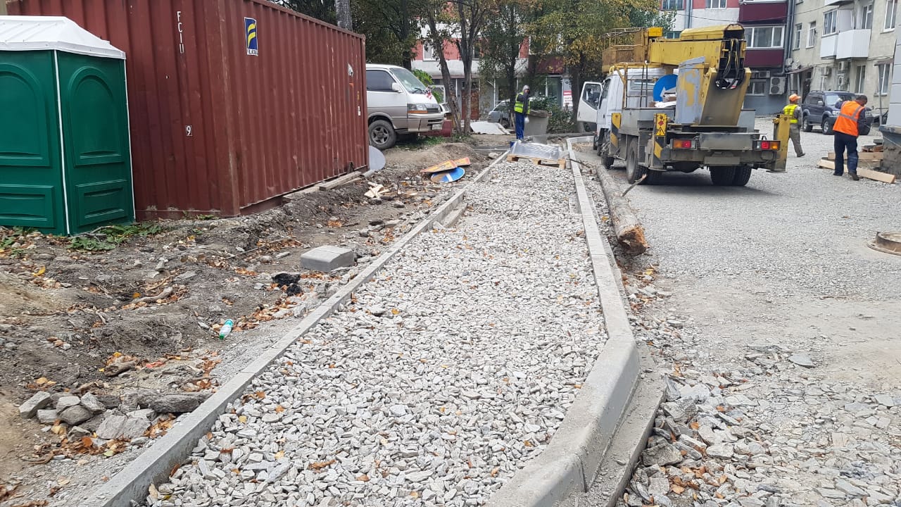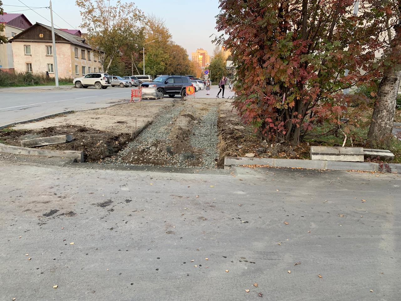 Как оказалось, проведенный ранее ремонт двора по улице Чехова, и его проектная документация, не учитывали наличие этого многострадального тротуара. Неделей позже пришлось опять пилить асфальт и демонтировать уже установленные блоки.