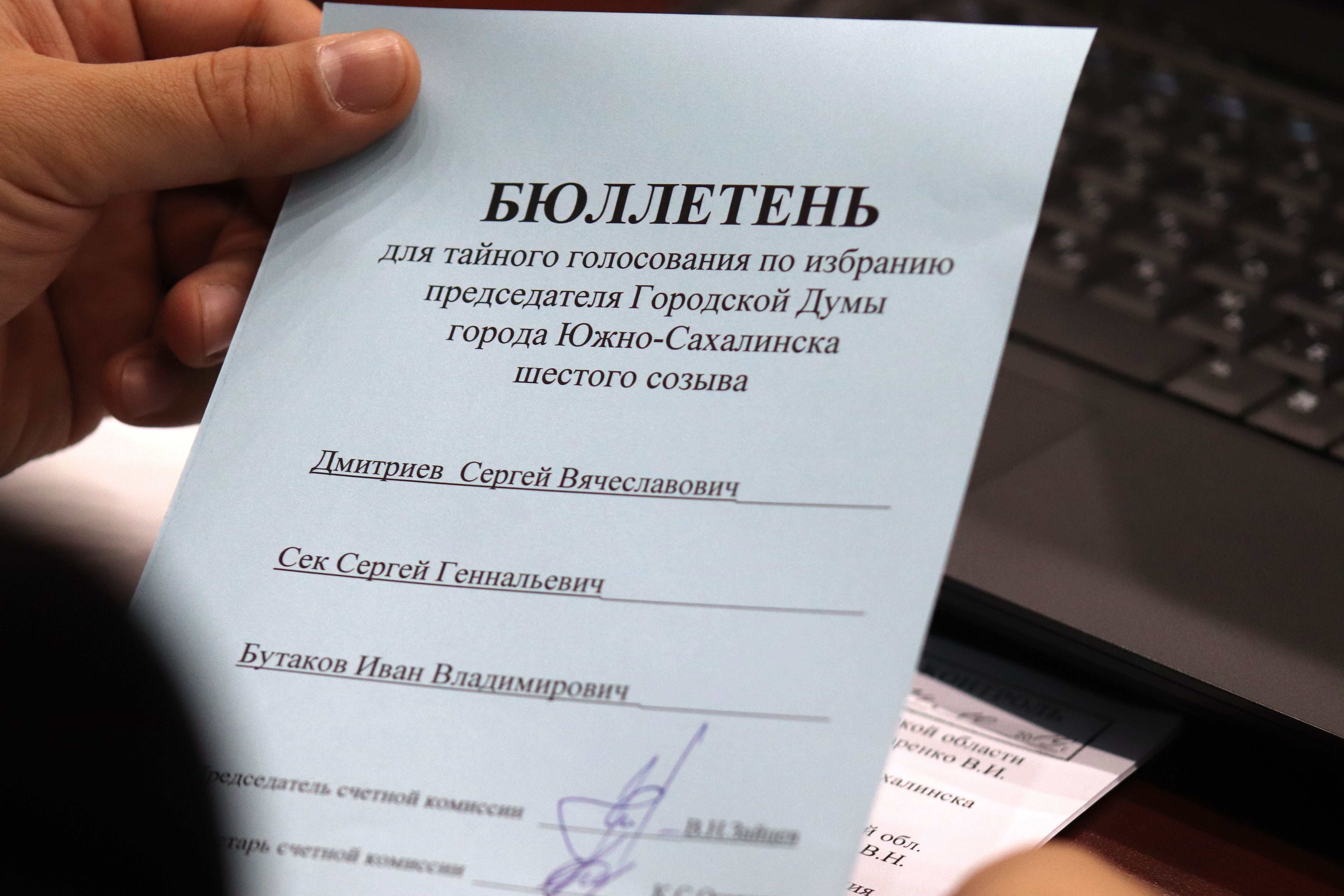 Первым вопросом стало рассмотрение кандидатур на должность председателя. Их в бюллетене оказалось три: Сергей Дмитриев, Сергей Сек и Иван Бутаков.