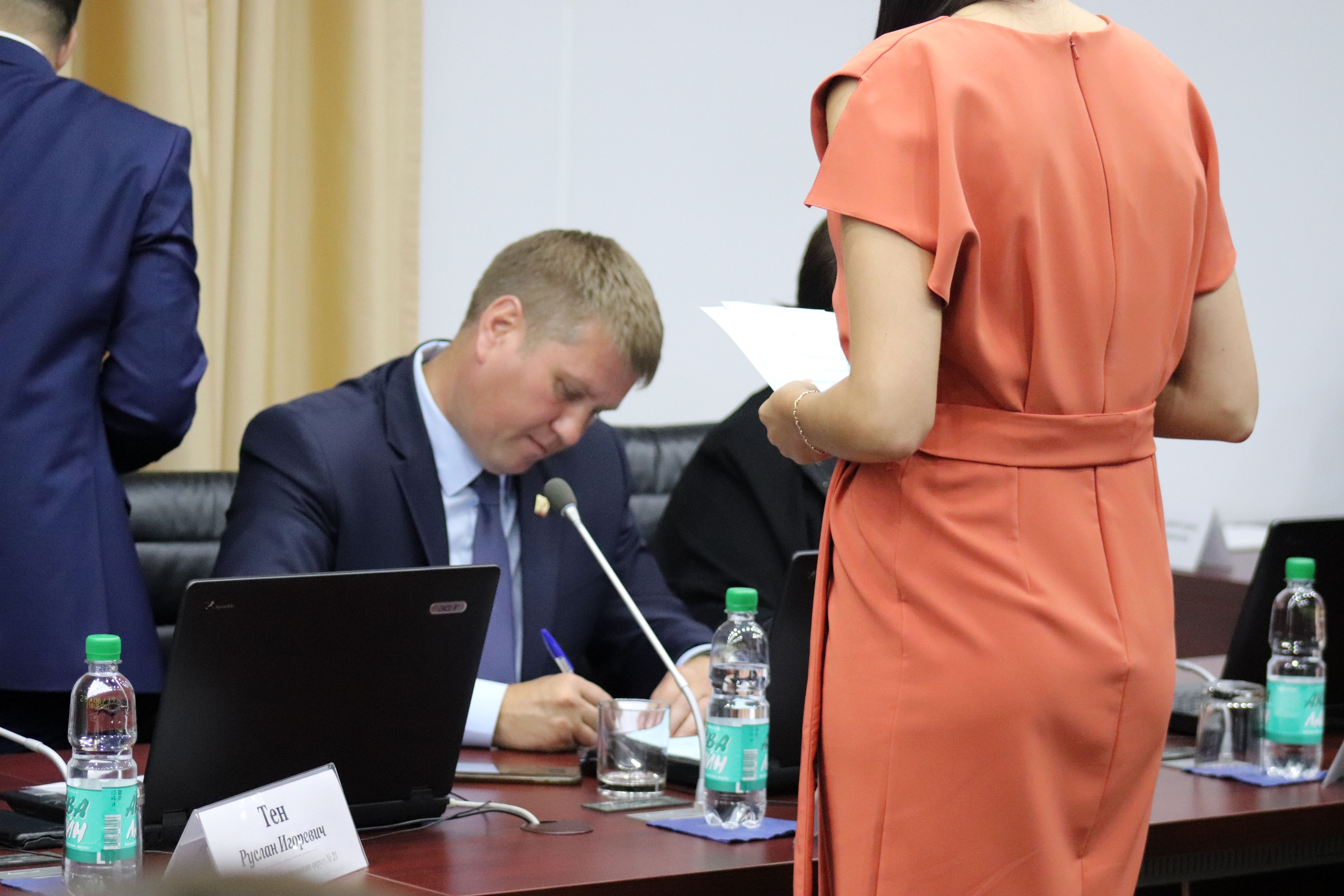 Традиция, когда до выборов председателя, на его месте находится старейший депутат, сегодня была нарушена. В кресле, во главе длинного стола находилась бывший председатель гордумы Елена Столярова.