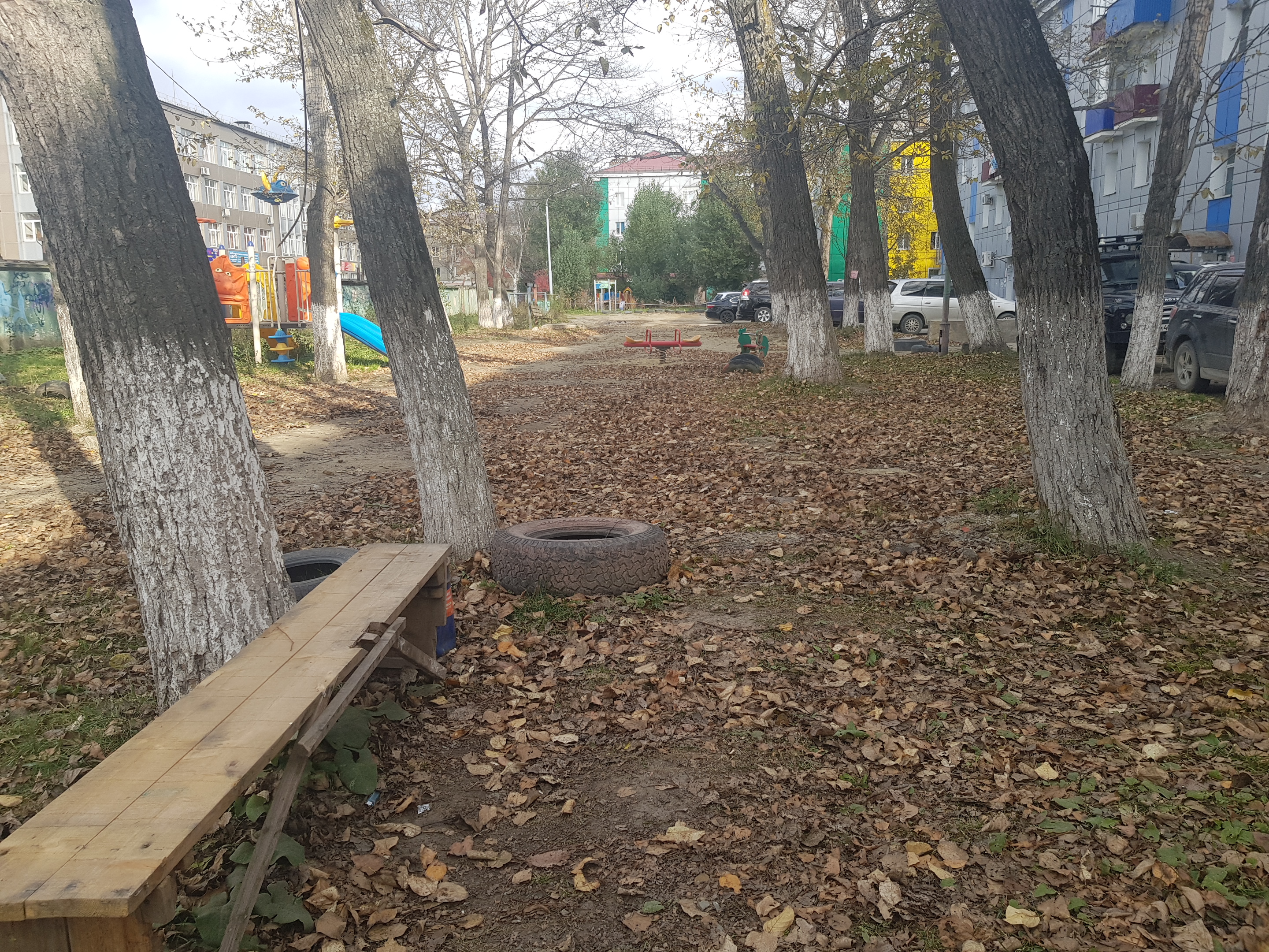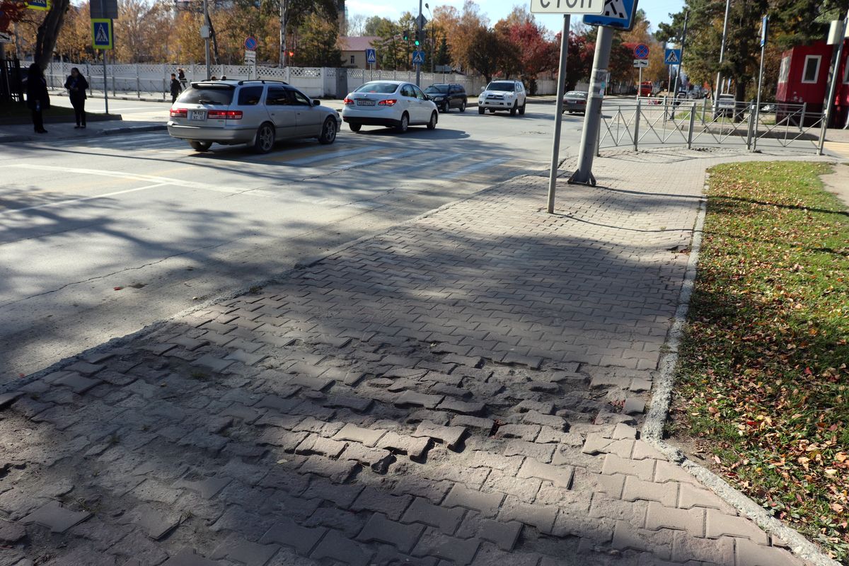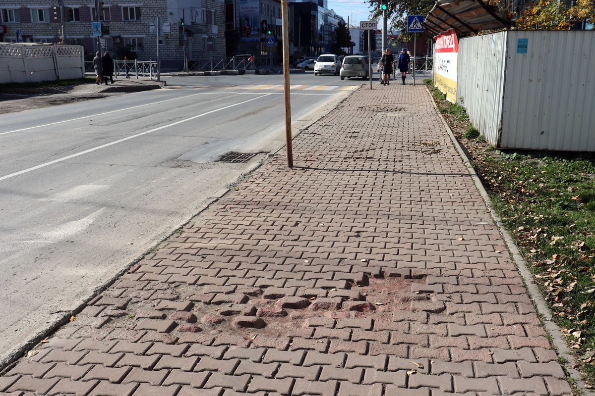 Плитку давно покорежило, тротуары слегка кривые. И, любуясь осенними пейзажами, каждый прохожий рискует сломать свой каблук или оторвать подметку.