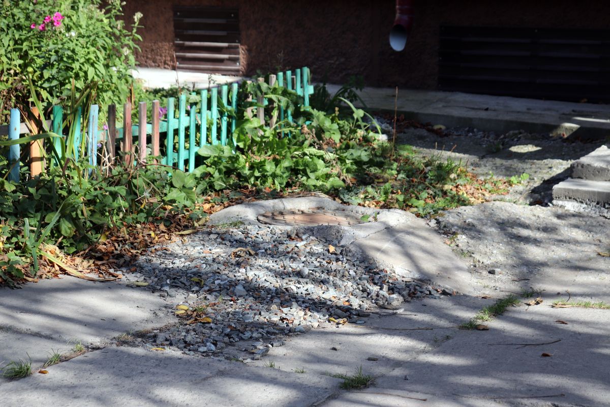 Дворы типовые – покореженные плиты, ямы, лужи и люки канализации, заботливо присыпанные щебнем.