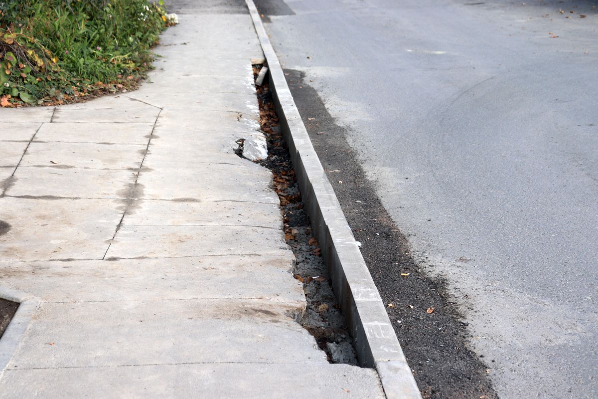 Практически на всем протяжении тротуара мы наблюдаем многочисленные провалы и вырезанные фрагменты “асфальто-бетонного” покрытия, в котором, благодаря разломам, мы так и не обнаружили его бетонной составляющей. Нет там бетона.