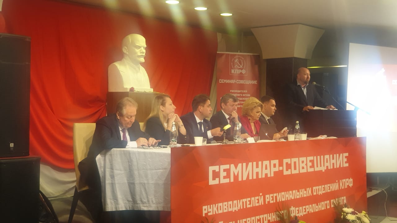 В Хабаровске завершил свою работу семинар-совещание руководителей и партийного актива региональных отделений КПРФ Дальневосточного Федерального округа. В его работе приняла участие сахалинская делегация в составе первого секретаря областного комитета Павла Ашихмина, сотрудников аппарата – Вячеслава Ким и Светланы Горшихиной.