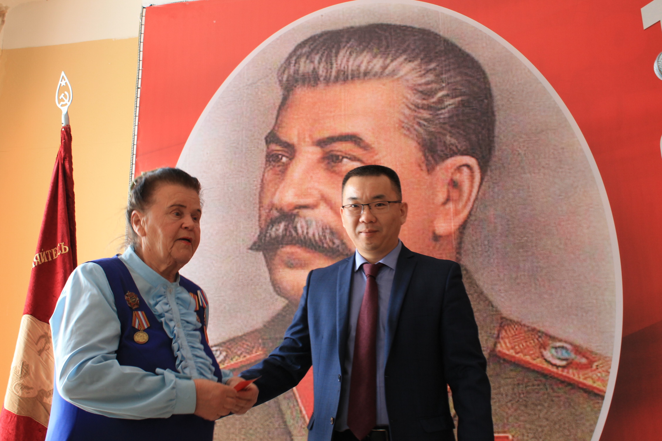 В Доме Союзов прошло торжественное собрание, в ходе которого ряд заслуженных представителей партии КПРФ были награждены юбилейной медалью. Среди ведущих мероприятия: депутат южносахалинской Думы Галина Подойникова и руководитель орготдела областной организации Вячеслав Ким.