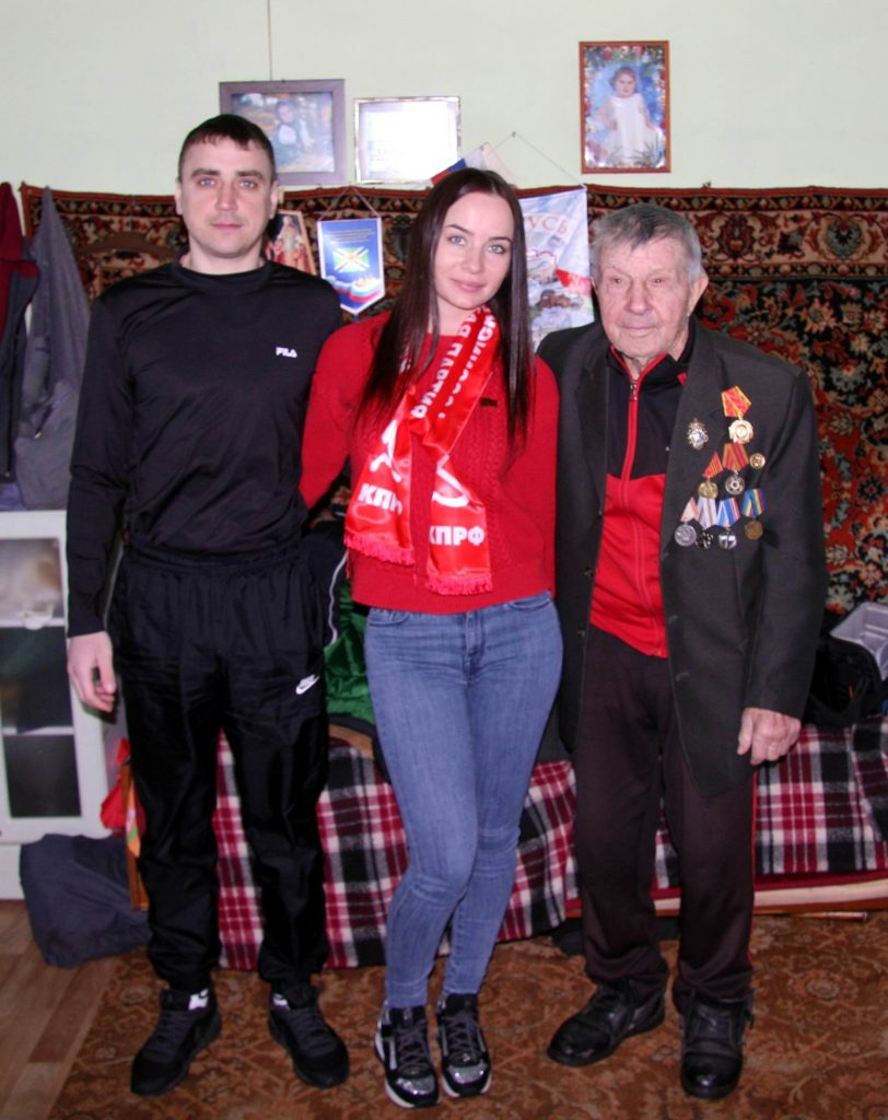 Невельские коммунисты поздравили Комарова Владимира Ивановича — участника партизанского движения в составе партизанского отряда, воевавшего с фашистами в годы Великой Отечественной войны, в юном возрасте он участвовал в боевых действиях отряда.