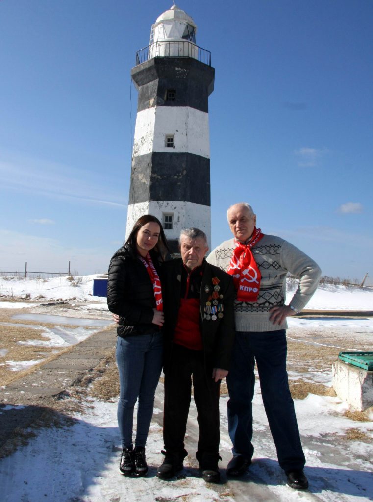 Владимиру Ивановичу вручены цветы, памятная медаль в честь 75-й годовщины окончания Великой Отечественной войны, а также красный флаг СССР — серп и молот, которые Владимир Иванович принял с особой благодарностью. Как он сказал, теперь этот флаг будет храниться на маяке и использоваться в торжественных случаях.