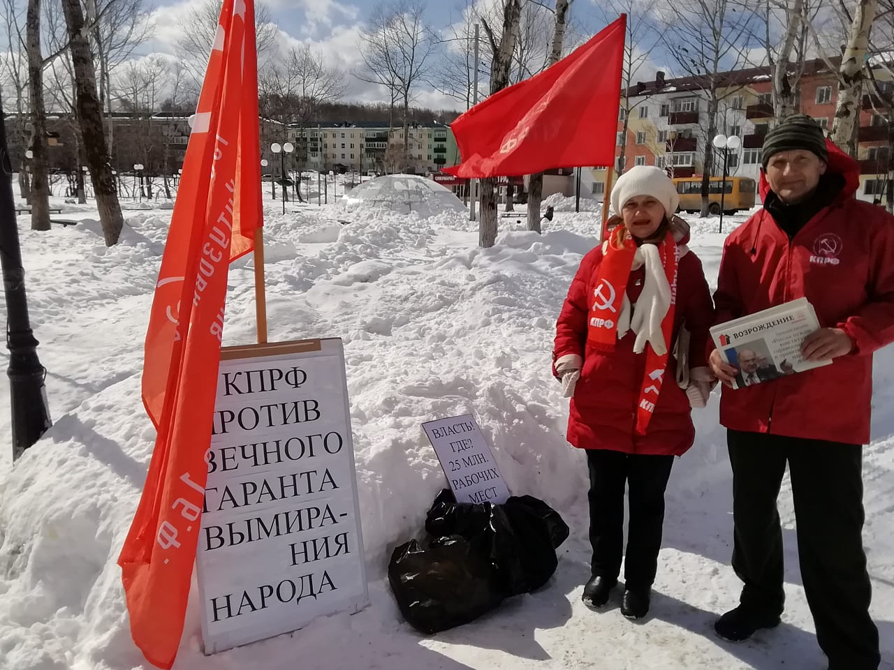В ходе проведения мероприятия распространили партийную газету “Возрождение”, информировали граждан о судьбе разработанных экспертами КПРФ 15 ключевых поправок к действующей Конституции, и позиции партии на предстоящем голосовании по президентским поправкам в Конституцию 22 апреля текущего года.