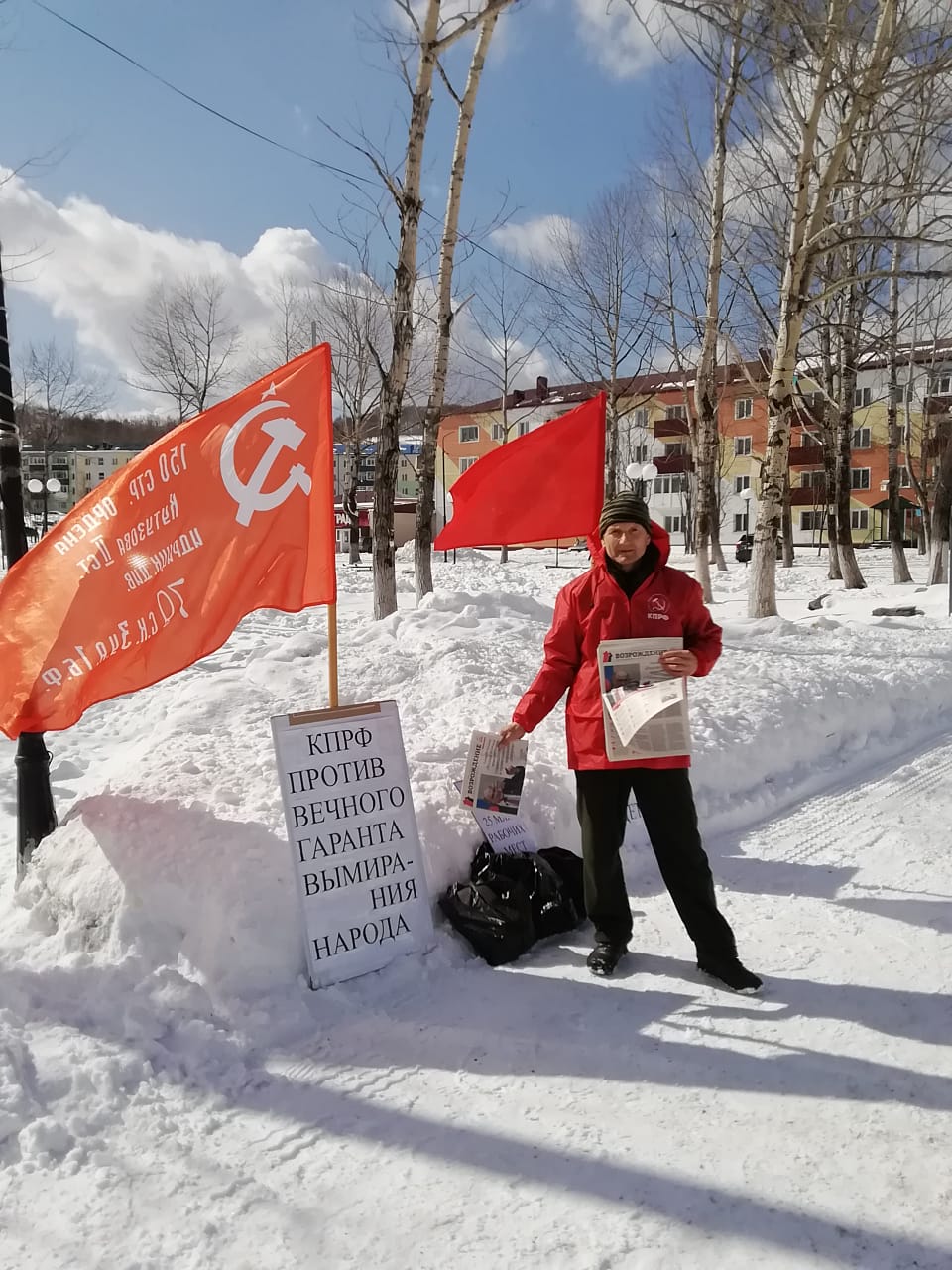Макаровское отделение КПРФ проводит пикет в память первого народного референдума по сохранению СССР.