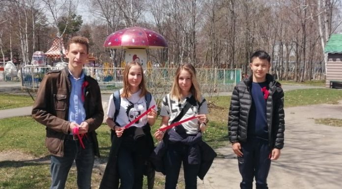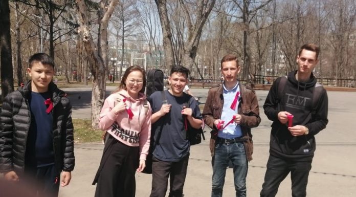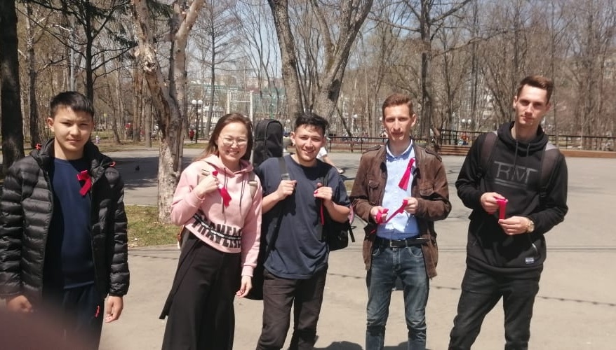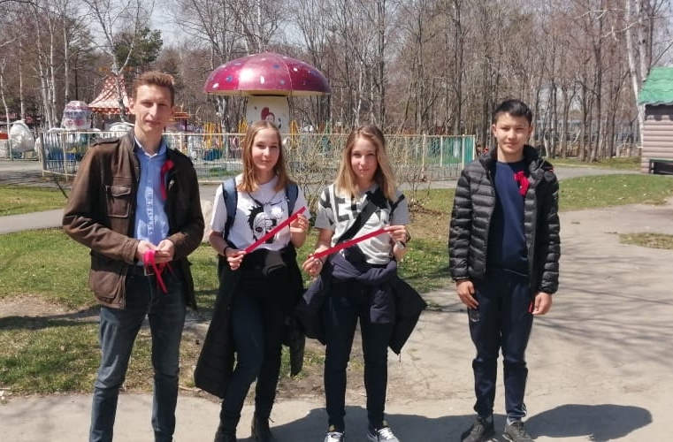 С 8 по 9 мая, активисты Ленинского Комсомола распространили более трёхсот красных ленточек среди жителей Южно-Сахалинска с изображением знамени Победы.