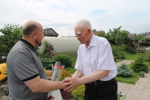 С почетной миссией поздравить ветерана в гости к Анатолию Павловичу пришли Первый секретарь областного комитета партии Ашихмин Павел Георгиевич и представитель молодёжной комсомольской организации (ЛКСМ РФ)-Тришин Иван Романович. Секратари областных партийной и комсомльской организации вручили  Анатолию Павловичу подарки и цветы.