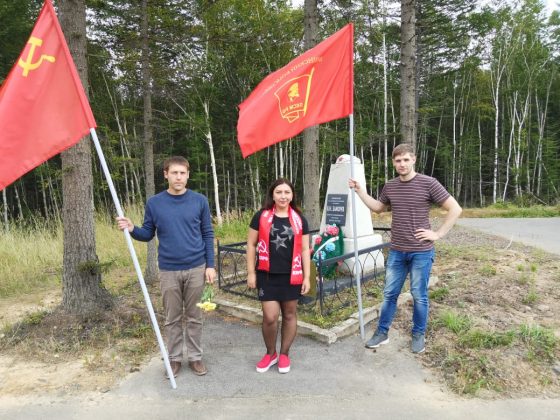 с. Леонидово Поронайского района. Коммунисты и комсомольцы Тымовского и Поронайского городских округов возложили цветы к мемориальному комплексу погибших в ходе боевых действий по освобождению Южно-Сахалина от японских захватчиков. Для тымовских комсомольцев и коммунистов мероприятие в селе Леонидово стало завершением организованного ими автопробега по местам боевой славы и захоронениям погибших в ходе боевых действий в августе-сентябре 1945 г.в Смирныховском и Поронайском районах острова Сахалин. Основным организатором автопробега выступил депутат Собрания Тымовского городского округа, коммунист Артём Васильев. В возложении цветов к мемориалу в селе Леонидов приняли также участие Первый секретарь Сахалинского регионального отделения КПРФ Павел Ашихмин, первый секретарь Поронайского местного отделения КПРФ Кирилл Верный, член областного Комитета КПРФ Андрей Душин.