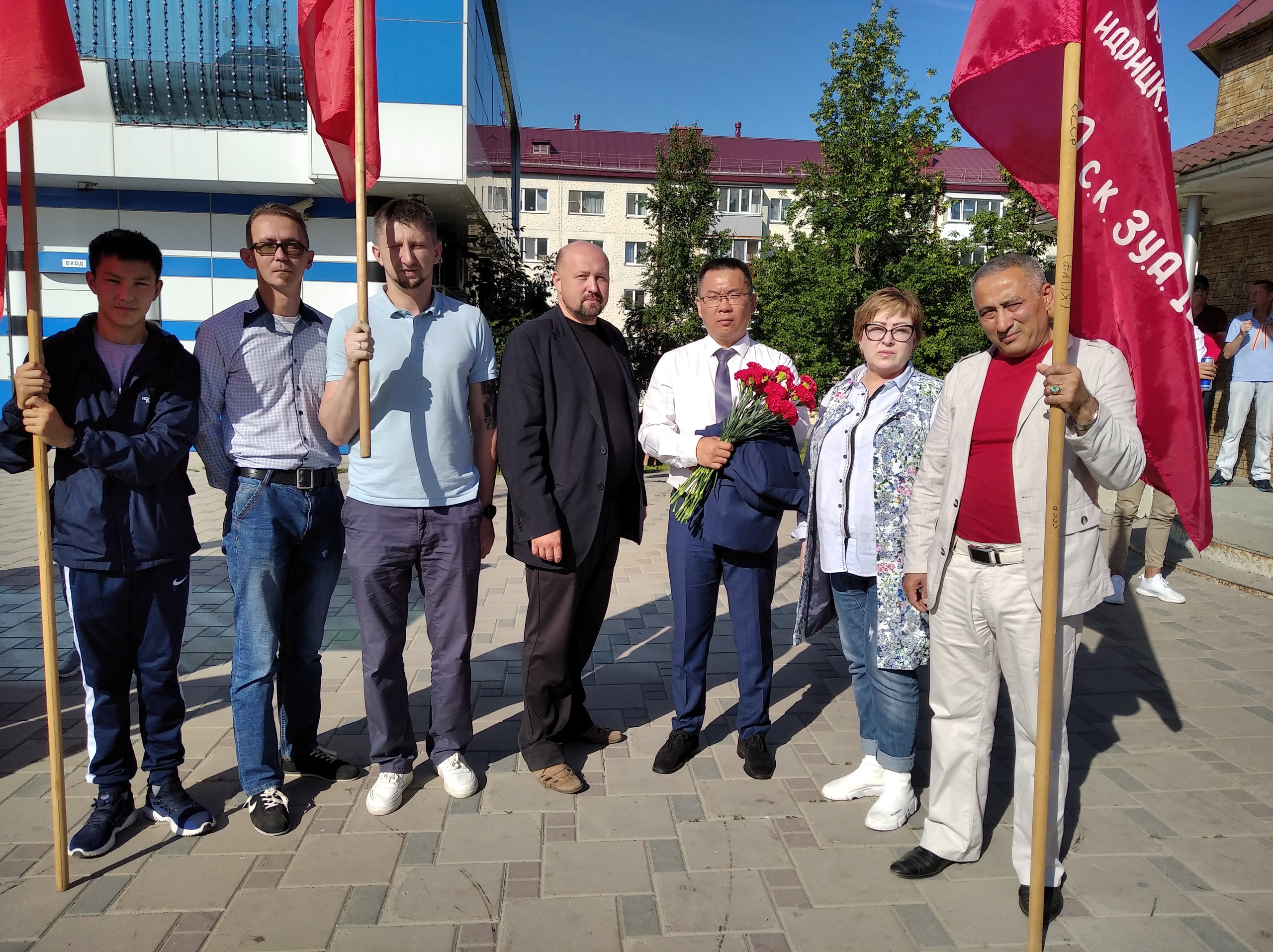 г.Долинск. Коммунисты города Долинска во главе с первым секретарём Долинского местного отделения Владимиром Пинкевичем и председателем областной Контрольно-ревизионной комиссии Верой Зориной приняли участие в торжественных мероприятиях и возложении цветов к мемориалу погибшим в Великой Отечественной войне и боевых действиях по освобождению южного Сахалинка и Курильских островов от японских захватчиков, а также к памятному знаку в честь танкистов-ремонтников города Долинска.