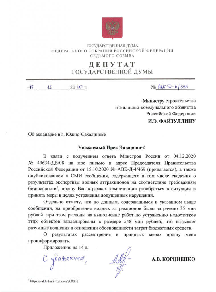 Вместе с тем, согласно заключению эксперта на момент передачи водного комплекса в собственность Сахалинской области техническое состояние аттракционов и оборудования, обеспечивающего их работу, не соответствовало нормативным требованиям, в связи с чем эксплуатация водных аттракционов без угрозы жизни и здоровью невозможна вплоть до настоящего времени.