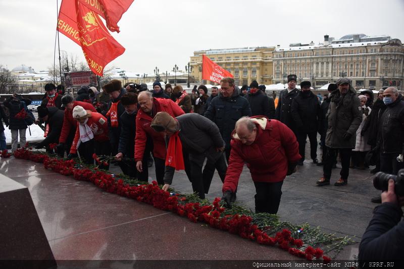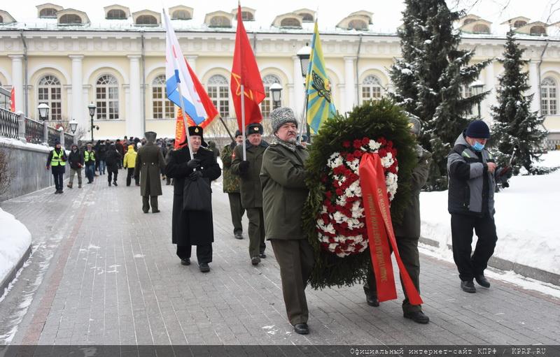23 февраля, несмотря на антикоронавирусные ограничения и морозную погоду, в Москве коммунисты, союзники и сторонники партии провели возложение цветов к Могиле Неизвестного солдата у Кремлевской стены. Колонну под красными знаменами возглавил Председатель ЦК КПРФ, лидер народно-патриотических сил России Г.А. Зюганов.