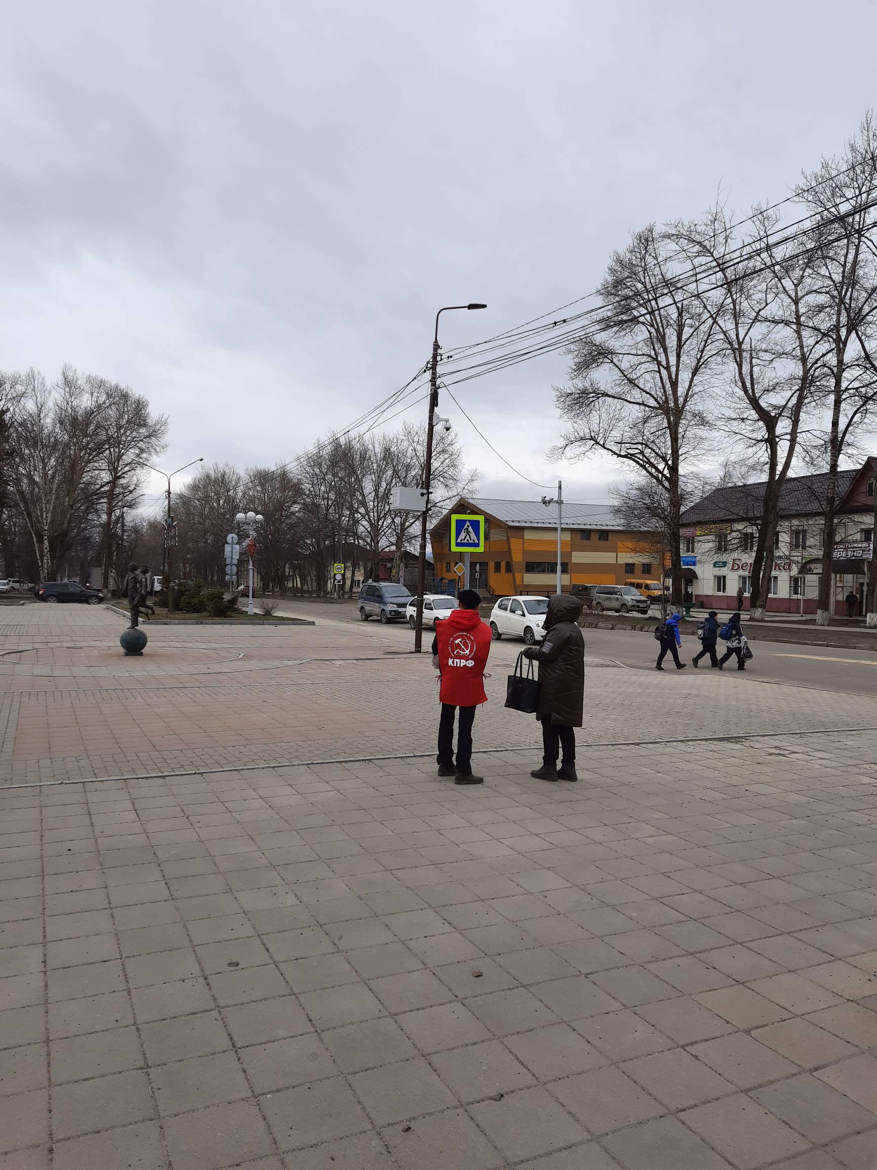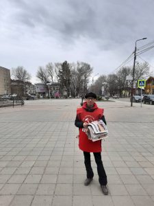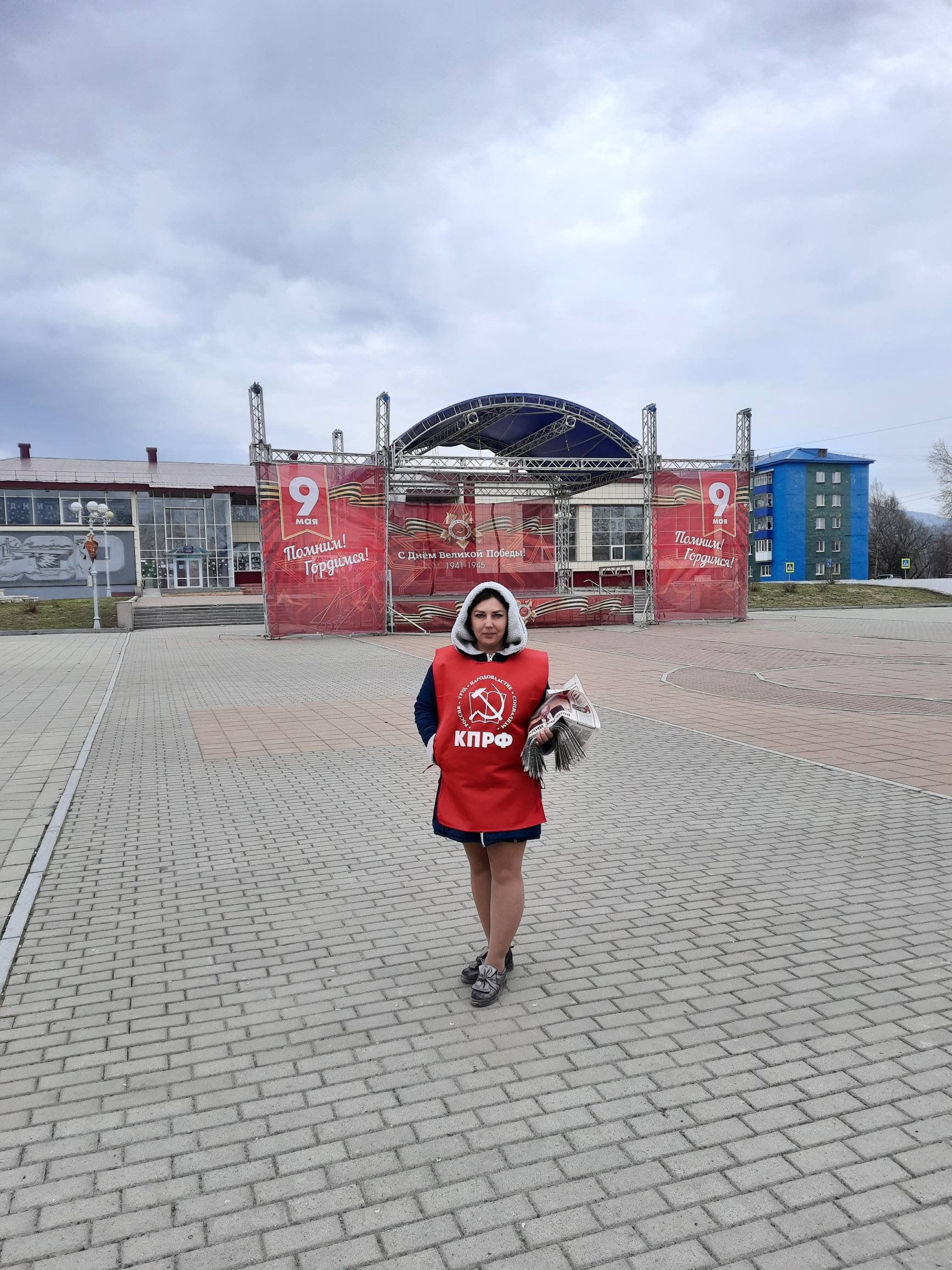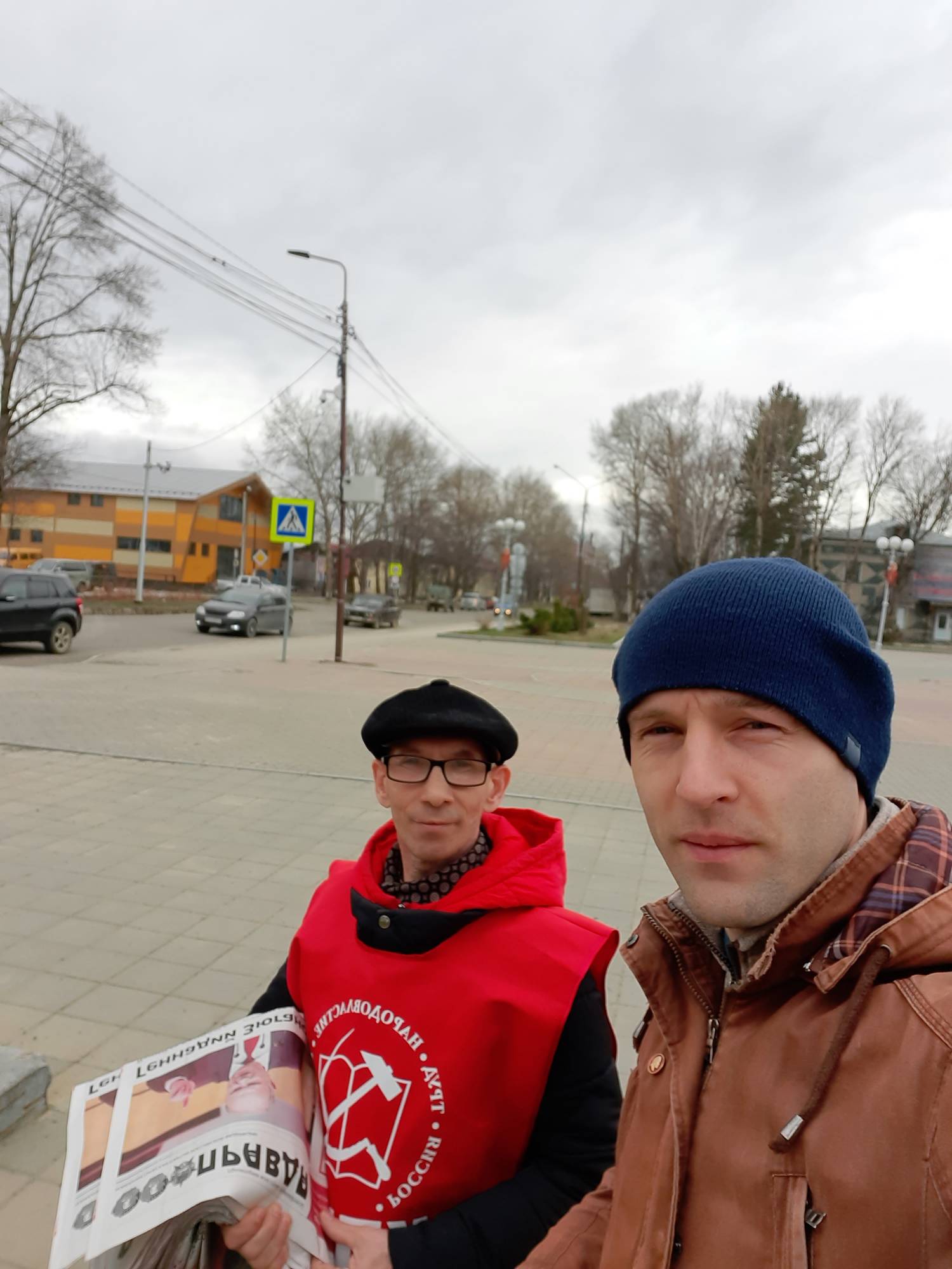13 мая в поселке Тымовское наши товарищи Судакова Валентина и Леонов Владимир вышли на центральную площадь имени В. И. Ленина. и раздавали специальный выпуск газеты ‘Правда’ местным жителям.