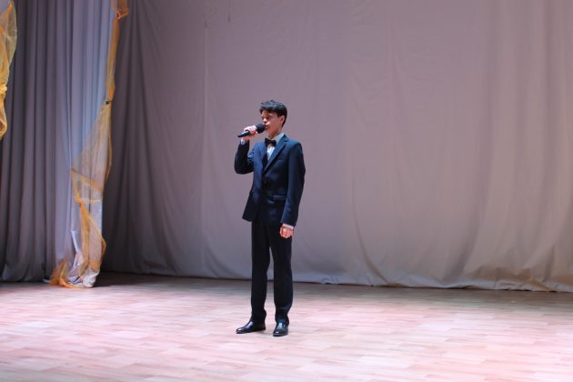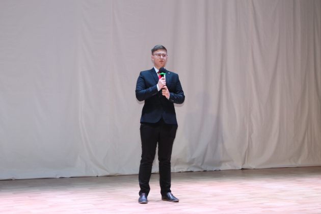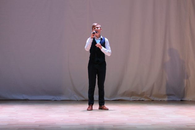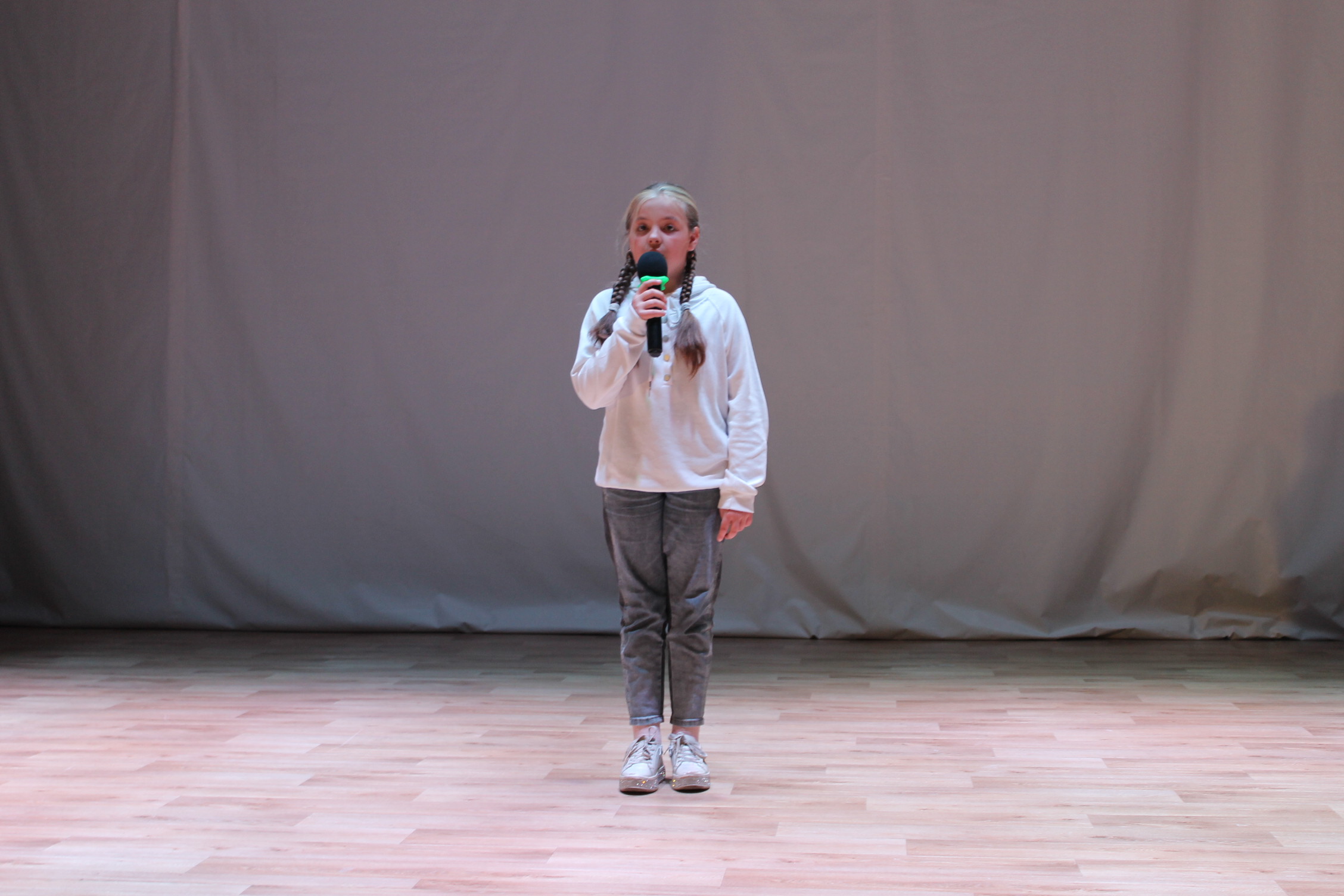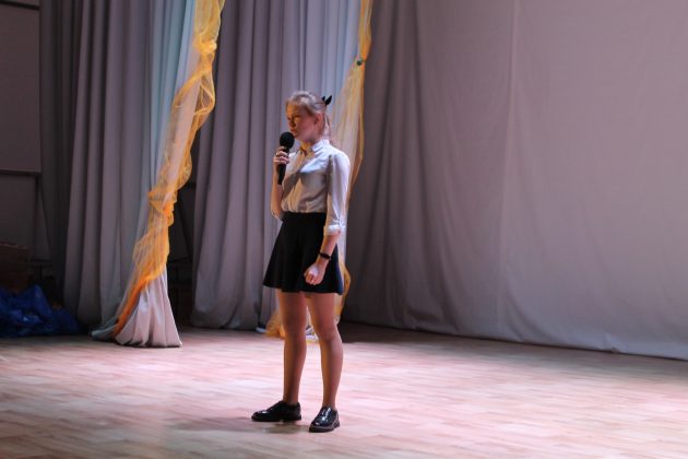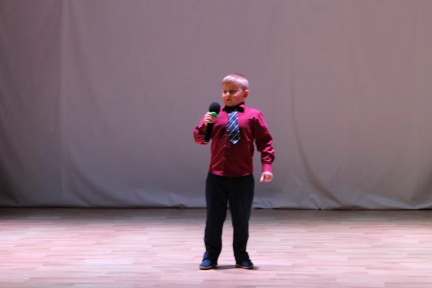 Самый маленький и самый яркий участник Саша Ожередов прочел стихотворение о первом советском космонавте, заслужив аплодисменты зала.