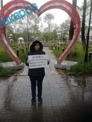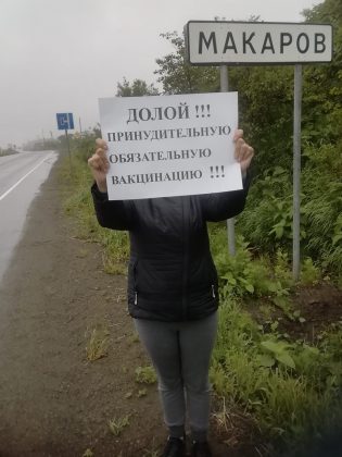 Несмотря на ненастье, Макаровцы предъявляют властям свое отношение к принудительной вакцинации!